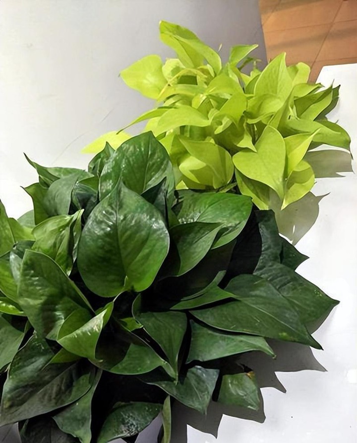 绿萝生长快速,枝叶繁茂覆盖整个盆栽,生机勃勃。