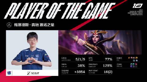 【JDG vs LNG 第一局】 MVP:Scout(乐芙兰) 第一次看到在蓝