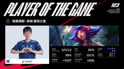 【TES vs LNG 第一局】 MVP:LNG.Scout(妮蔻) 打不过