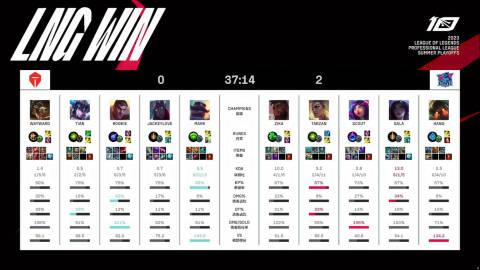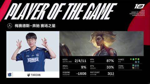 【TES vs LNG 第二局】 MVP:LNG.Tarzan(芮尔) 领先