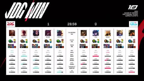 胜者组决赛【BLG vs JDG第一局比赛】 MVP:Kanavi(李青) 季后赛JDG在蓝色方就没打过这么顺利的比赛。