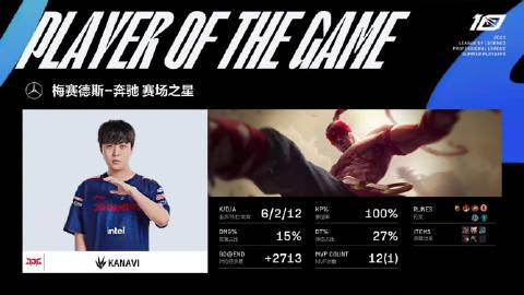 胜者组决赛【BLG vs JDG第一局比赛】 MVP:Kanavi(李青)