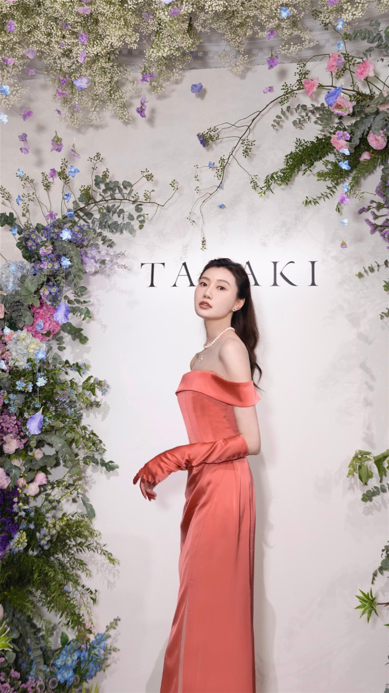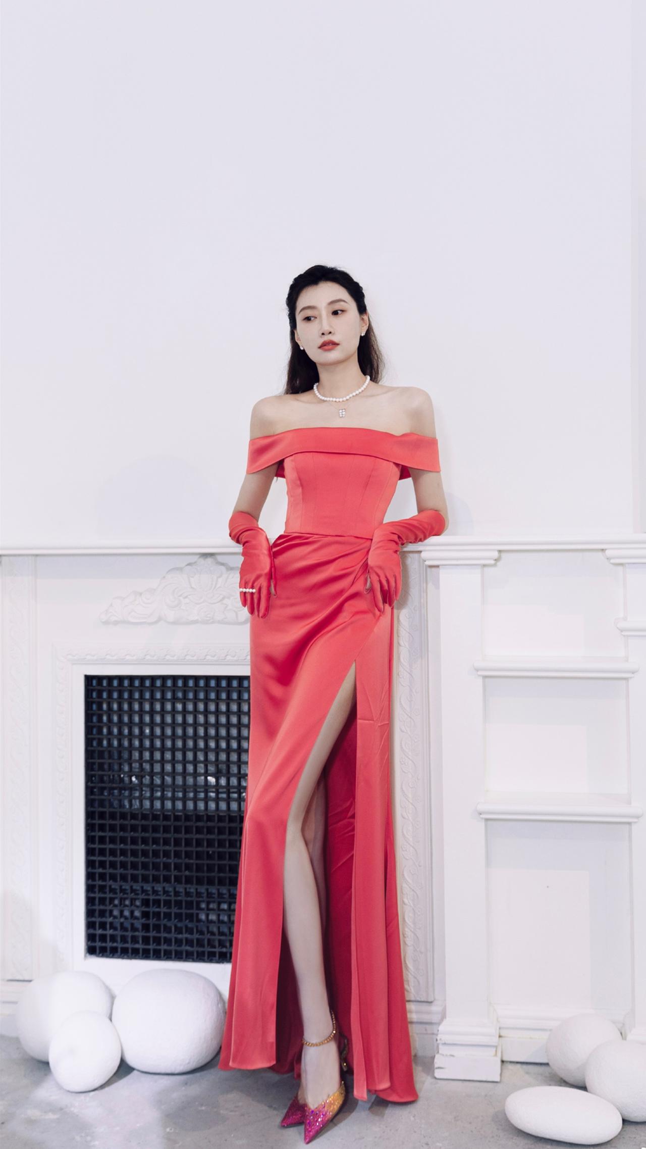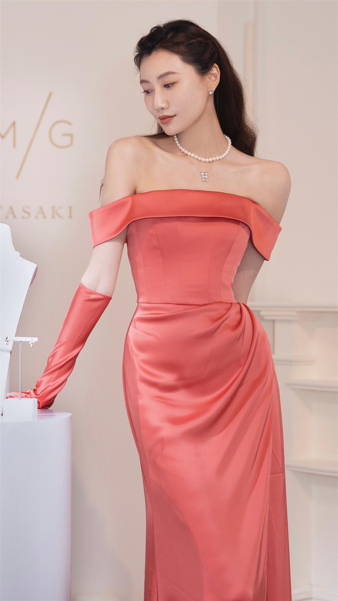 李斯羽粉红丝缎抹胸裙造型壁纸图集