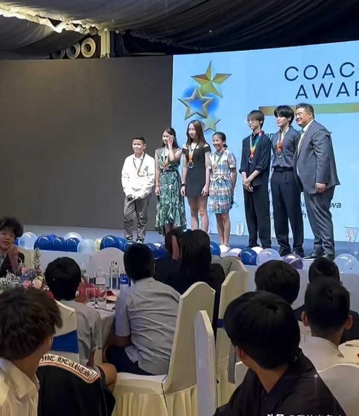 另外 neinei 还拿下了年度最佳运动员的奖项,这次活动收获满满,吴尊女儿成了全场焦点,连续上台领奖超开心。吴尊坐在下面看着女儿充满自信的样子,心里无比的骄傲,从小呵护长大的女儿,终于慢慢开始发光了,孩子未来一片坦途。