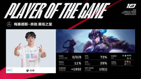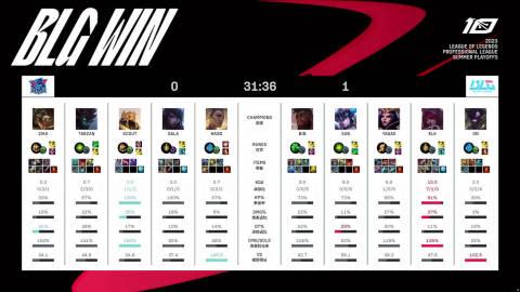 败者组决赛【LNG vs BLG 第一局比赛】 MVP:BLG.Xun(瑟庄