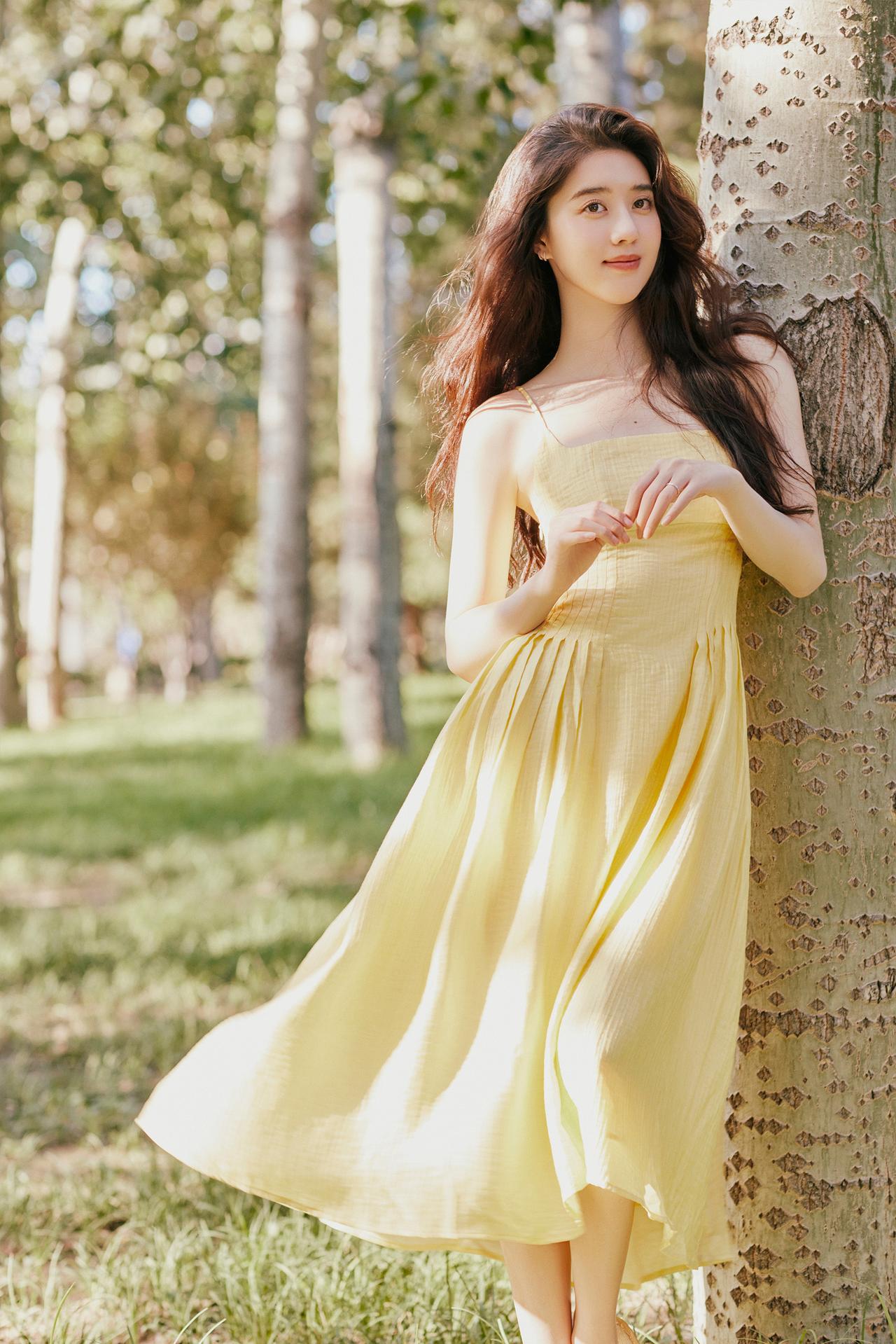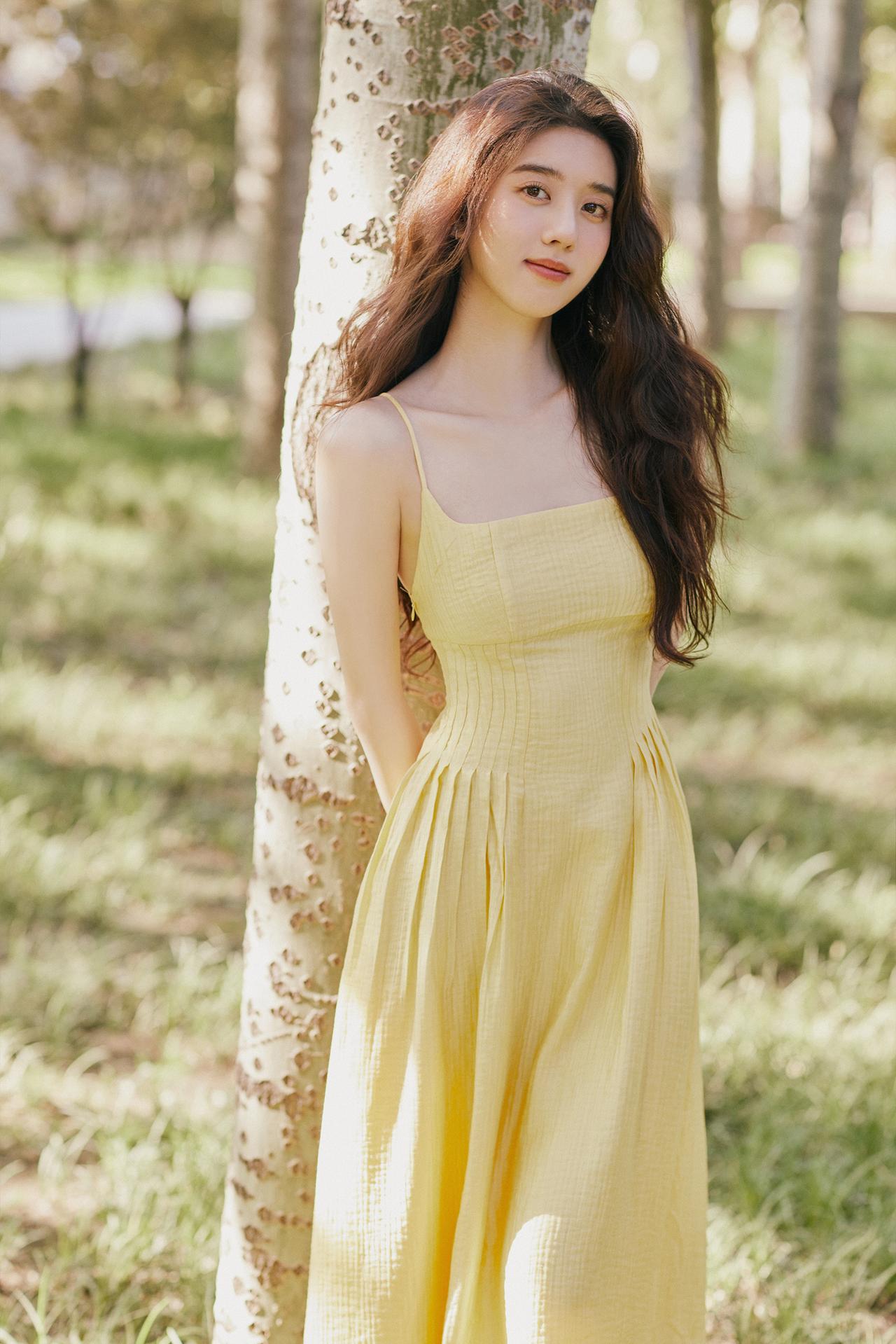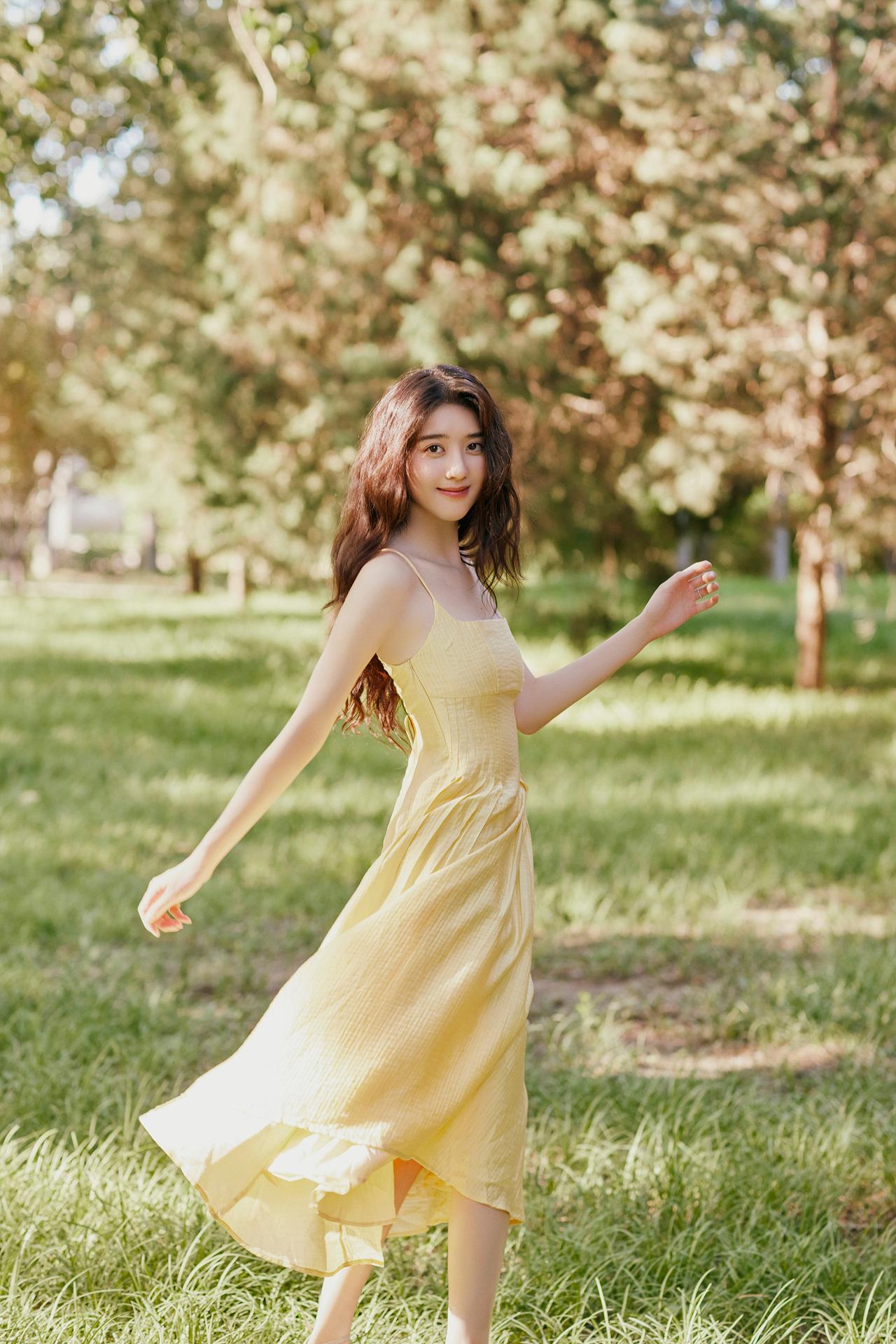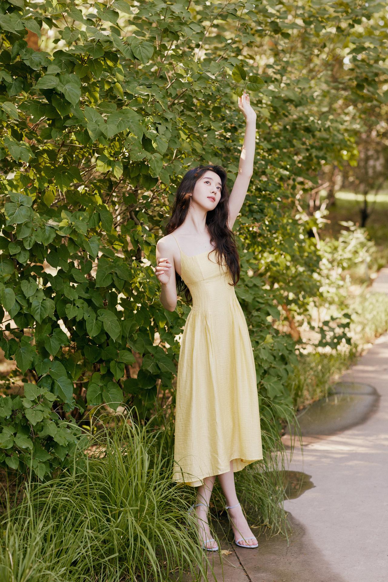 李凯馨夏日明黄吊带裙小清新穿搭18宫格组图