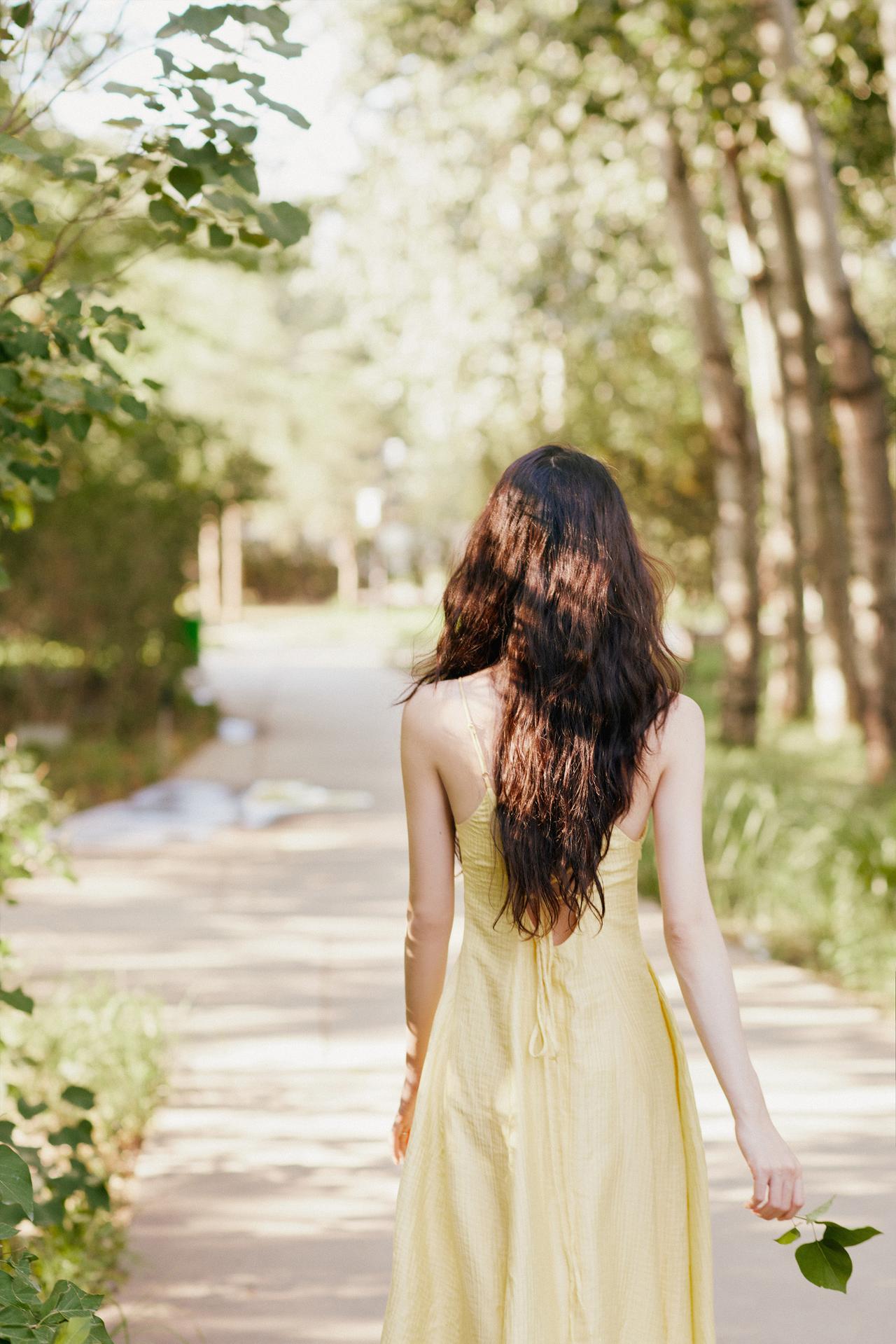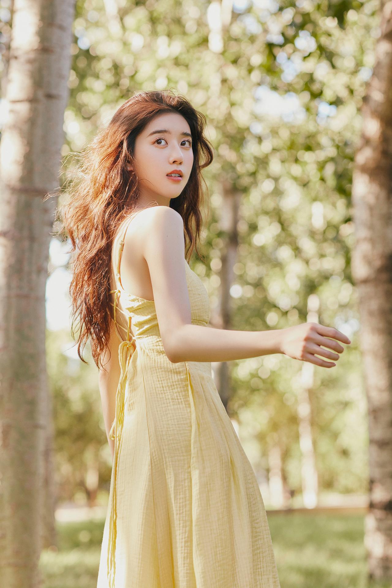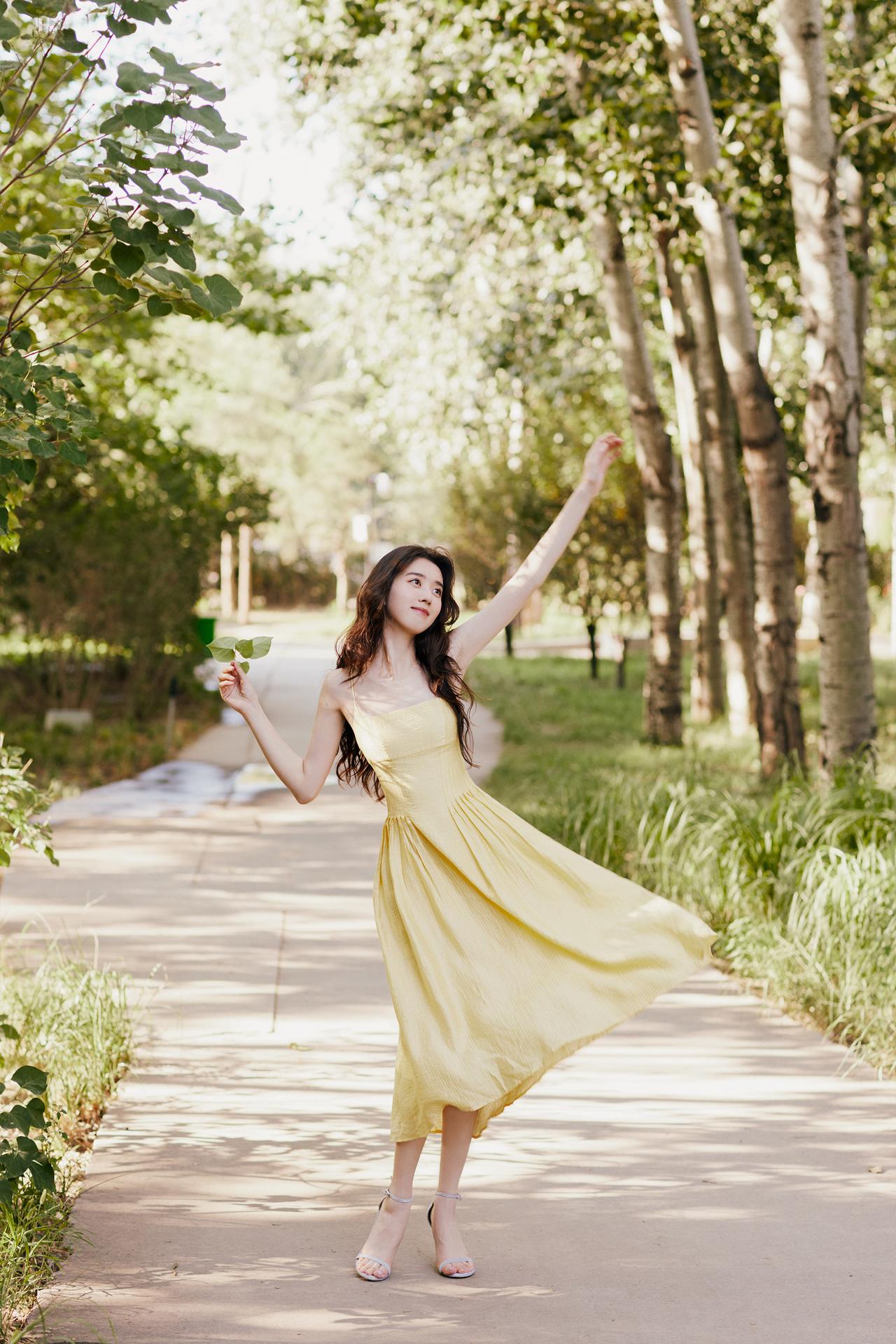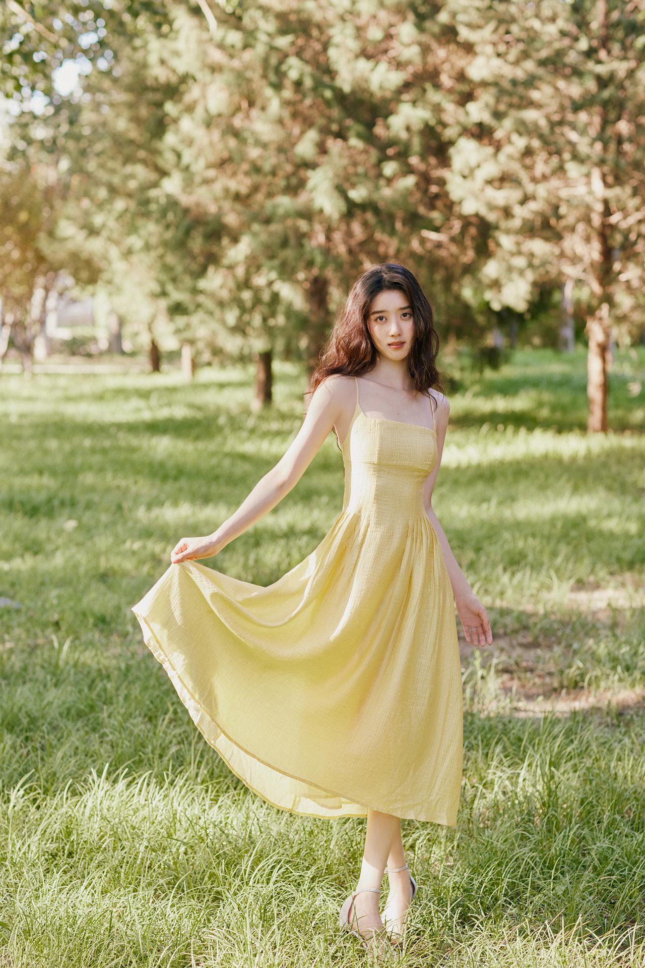 李凯馨夏日明黄吊带裙小清新穿搭18宫格组图