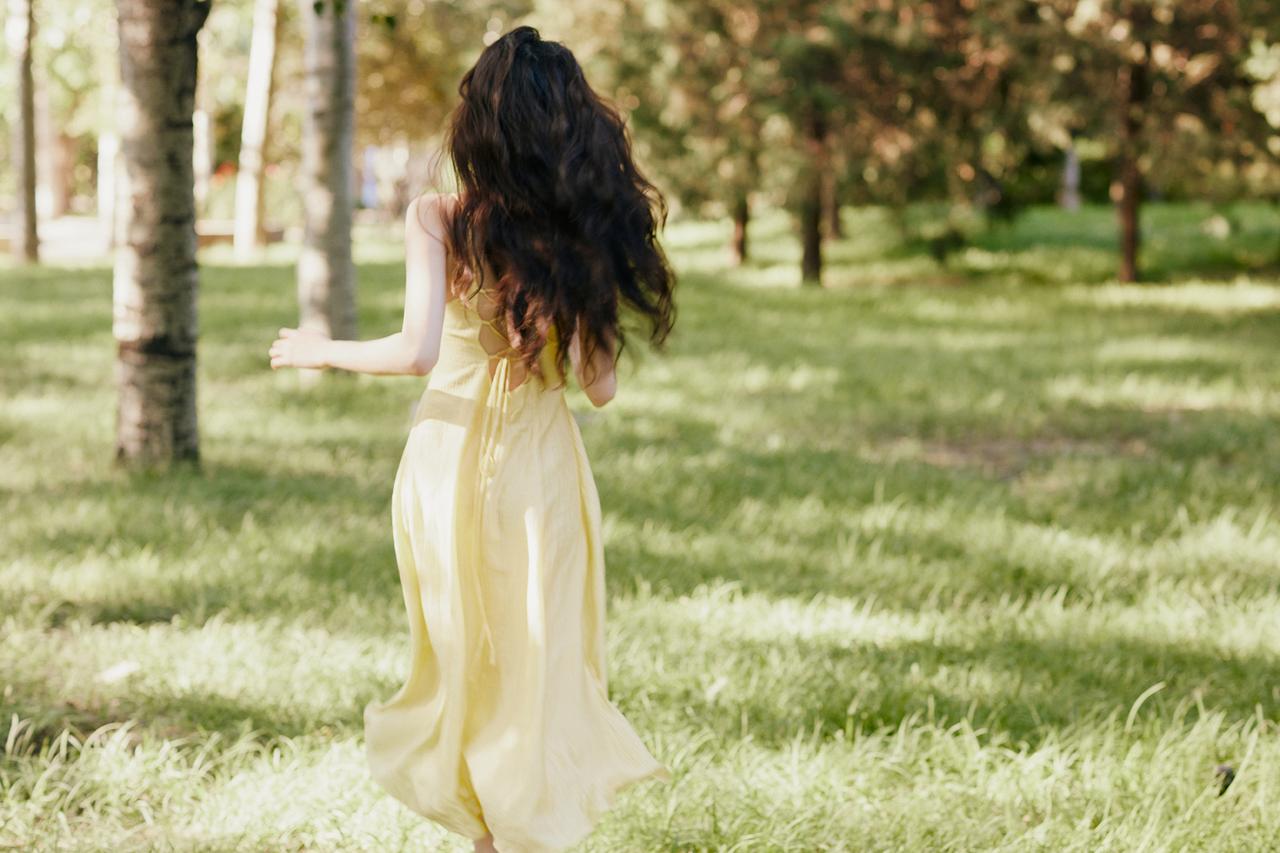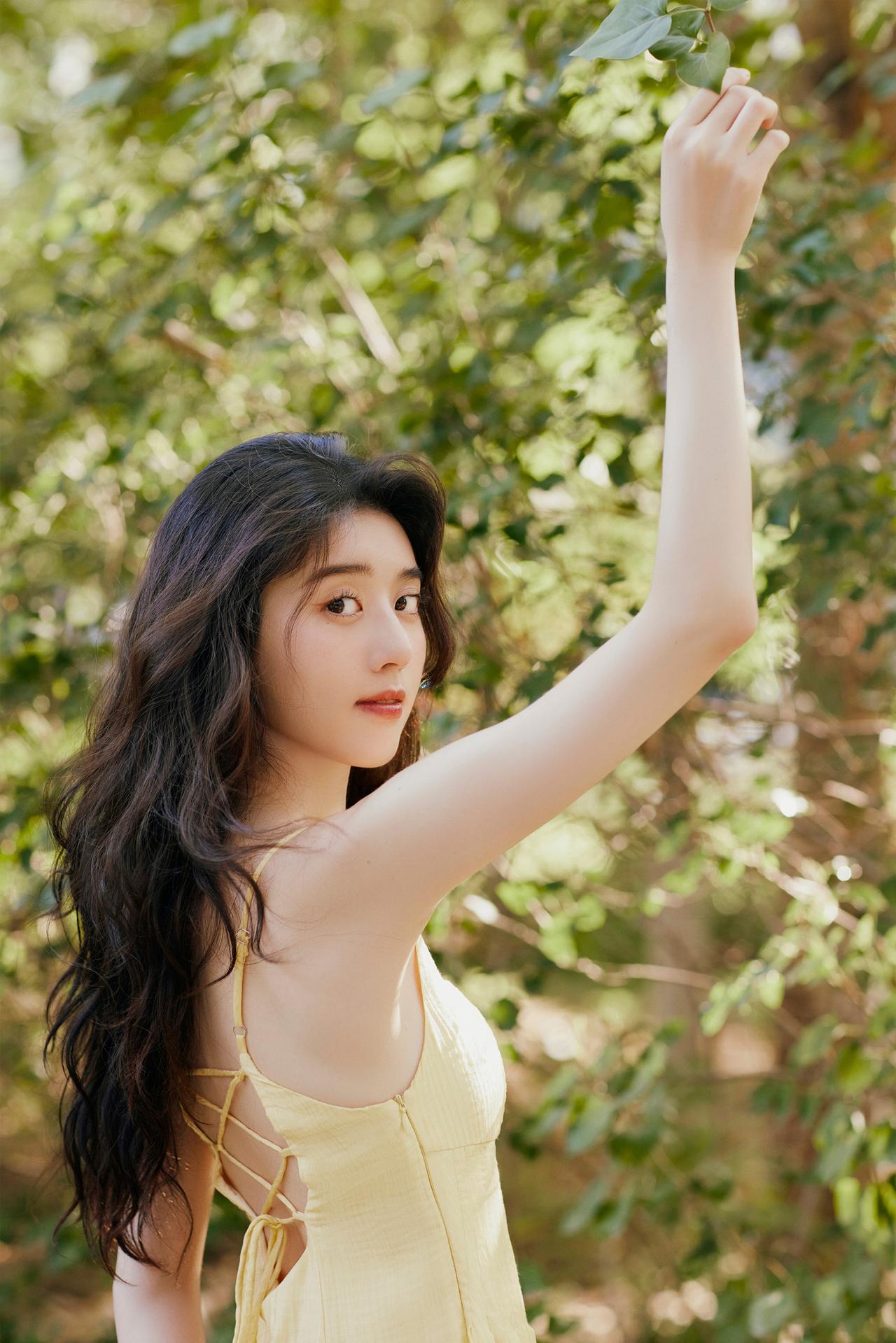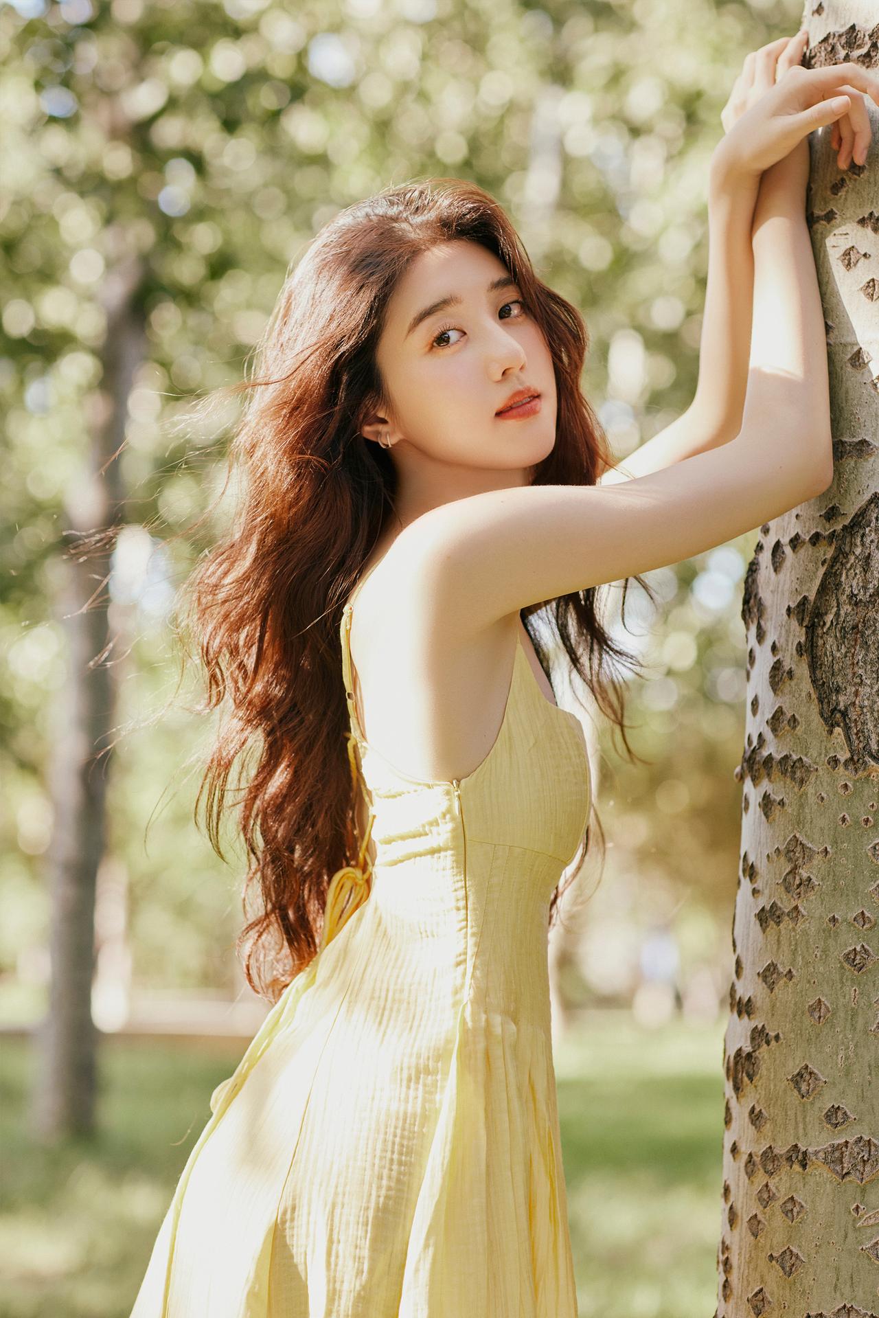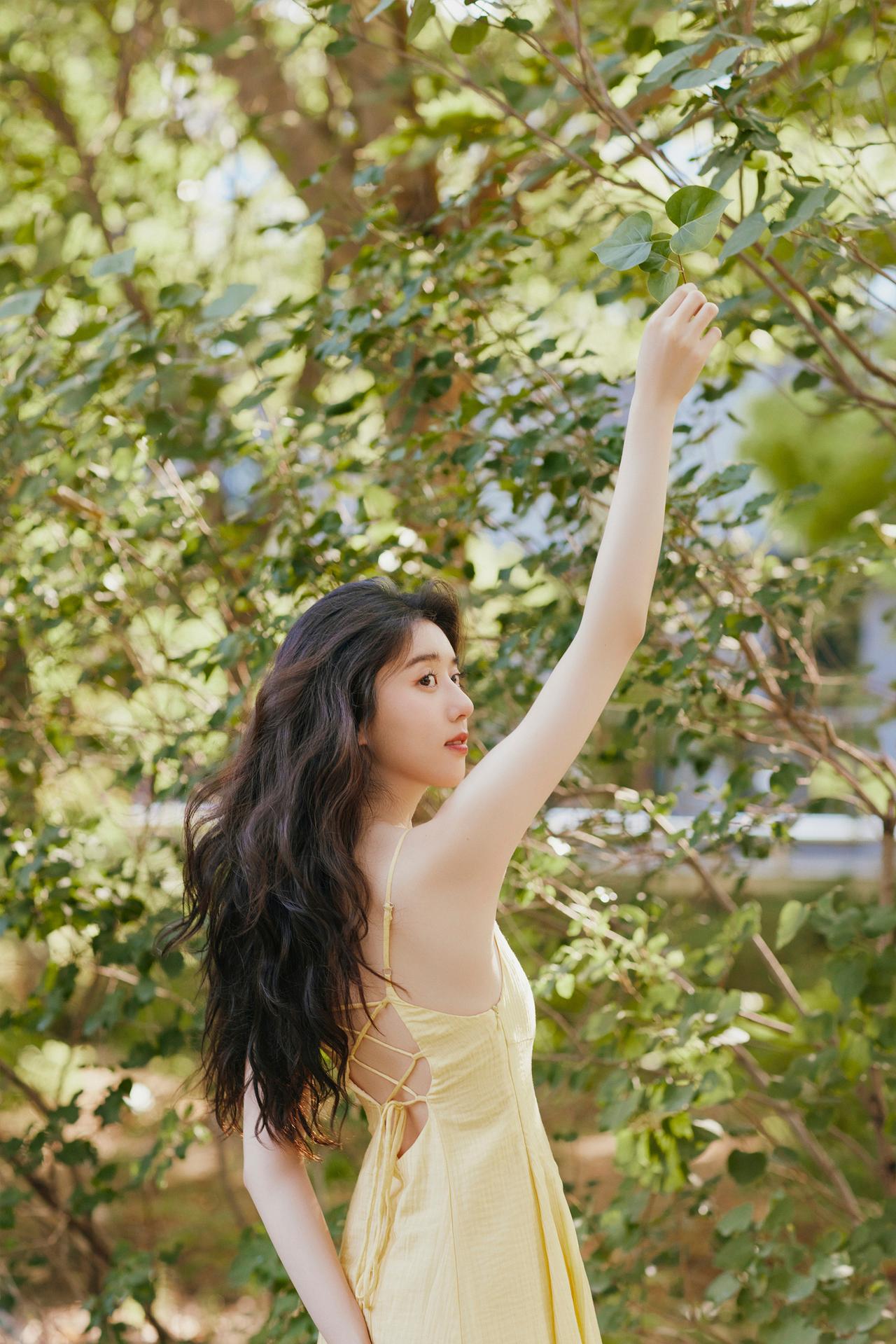 李凯馨夏日明黄吊带裙小清新穿搭18宫格组图