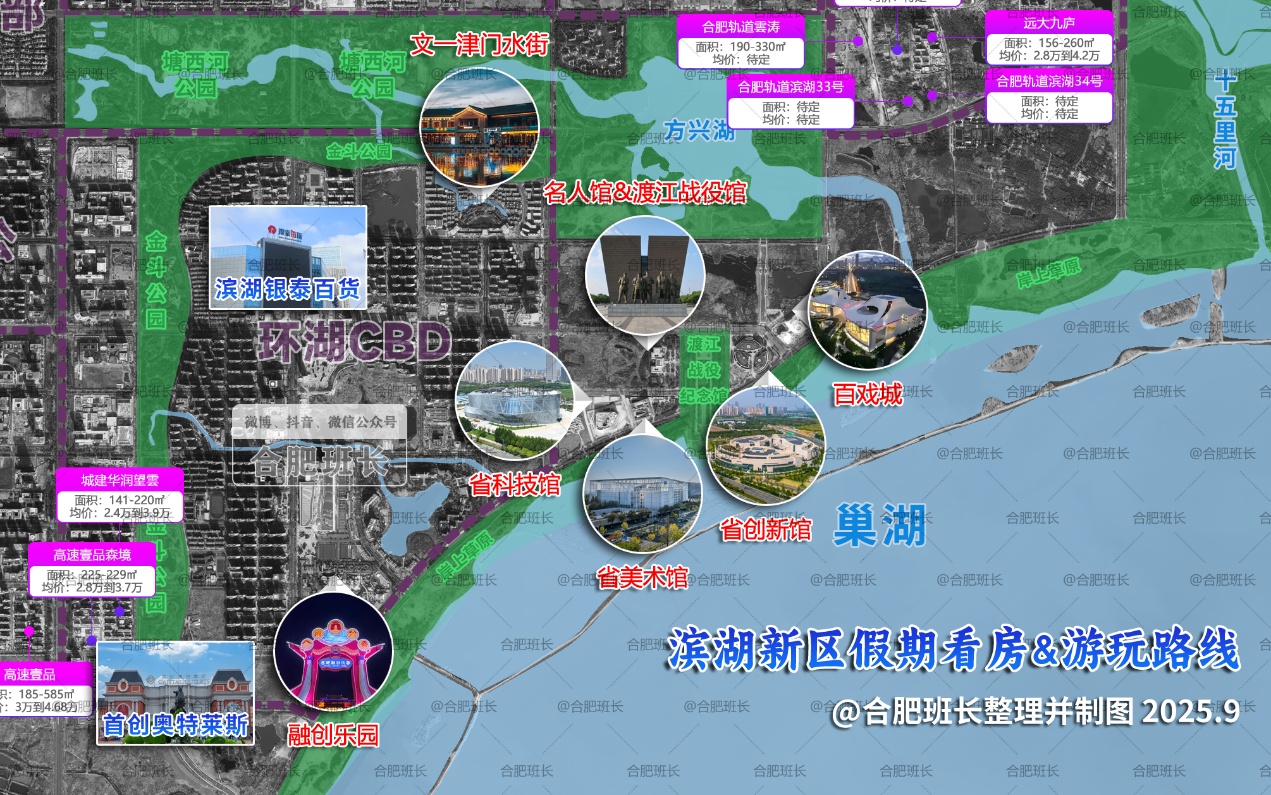 要是去三县看房,肥西的祥源花世界可以带娃去玩,肥东和睦湖公园有个游乐场,长丰有新开业的元小鳌学习乐园。