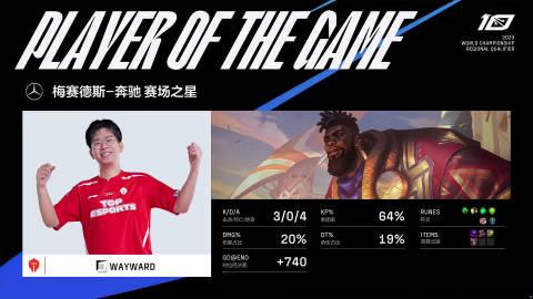 【TES vs WBG】第一局 MVP: Wayward (奎桑提) WBG的