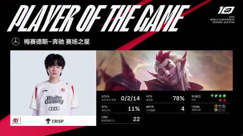 vs WBG】第五局 MVP: Crisp (洛) 恭喜WBG挺进资格赛下一轮,明天将对阵EDG,争夺最后一张世界赛门票!