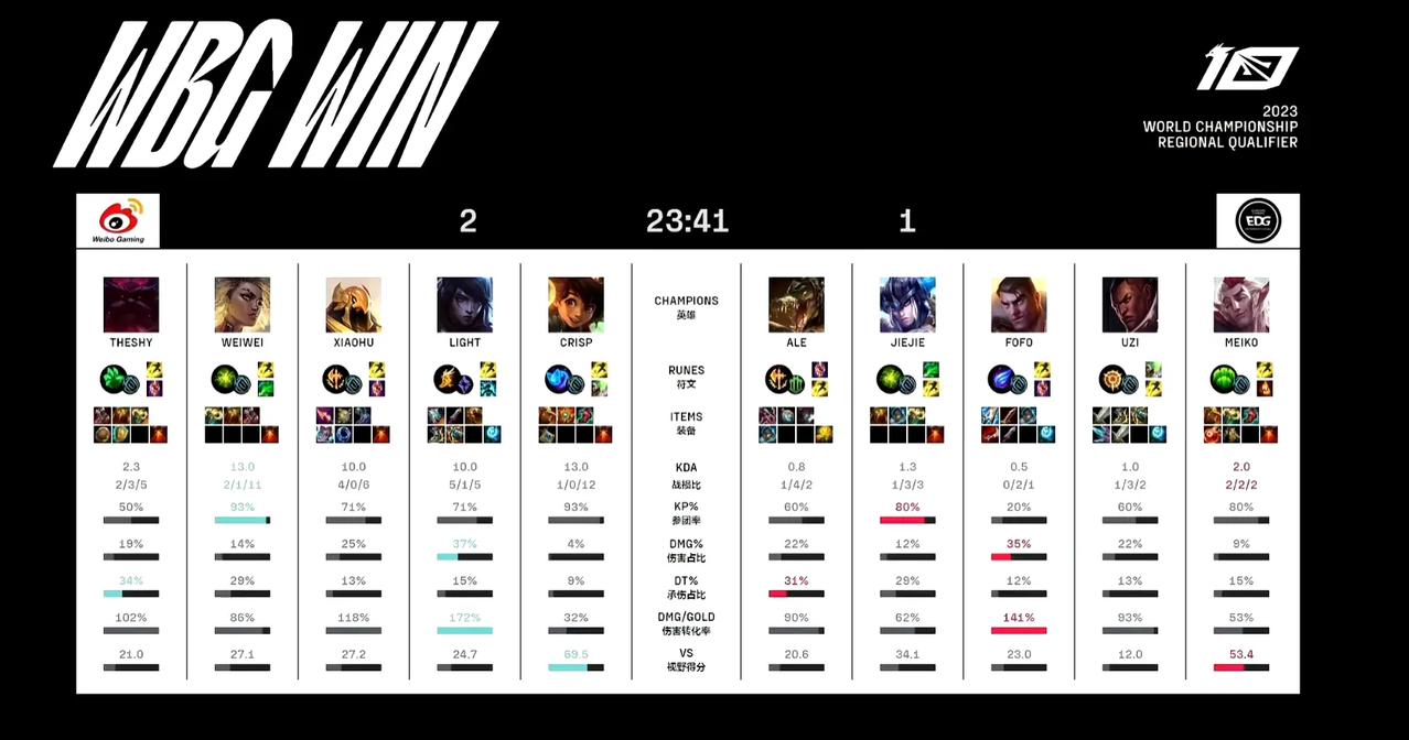 vs WBG第三局】 MVP:Weiwei(芮尔) WBG拿到赛点!
