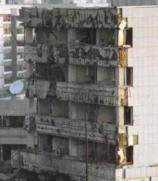 图为位于南联盟贝尔格莱德樱花大街1号被轰炸后的中国大使馆