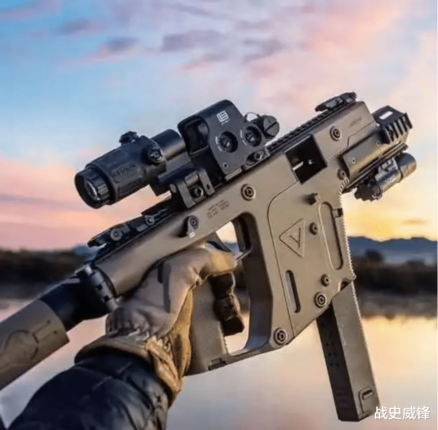 VECTOR冲锋枪是美国KRISS公司研制生产的,VECTOR的名字来自亚洲一把具有火焰状刀身的马来短剑,因此VECTOR冲锋枪也被称为短剑冲锋枪,同时这把冲锋枪在狭窄的环境中,有着相当出色的突击能力,所以又被众多军迷称为巷战王者。VECTOR是冲锋枪中后坐力极低的一款枪械,其射速达到了非常恐怖的1200发每分钟,全枪重量仅有2.72公斤,其外观造型也是非常的科幻,经常出现在各种影视剧和游戏中。
