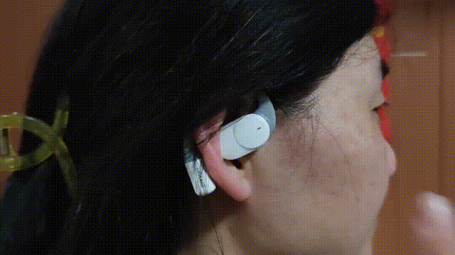 到手开箱第一印象就是:轻。耳机本体非常小巧,单只重量控制得极好,官方数据显示单只耳机仅8克,实际佩戴时几乎感觉不到负担。耳机耳挂部分采用液态硅胶材质,亲肤舒适佩戴触感很舒适,耳挂佩戴方式轻轻一转,耳机就稳稳佩戴耳边,贴合感很好,也没有明显的挤压感。