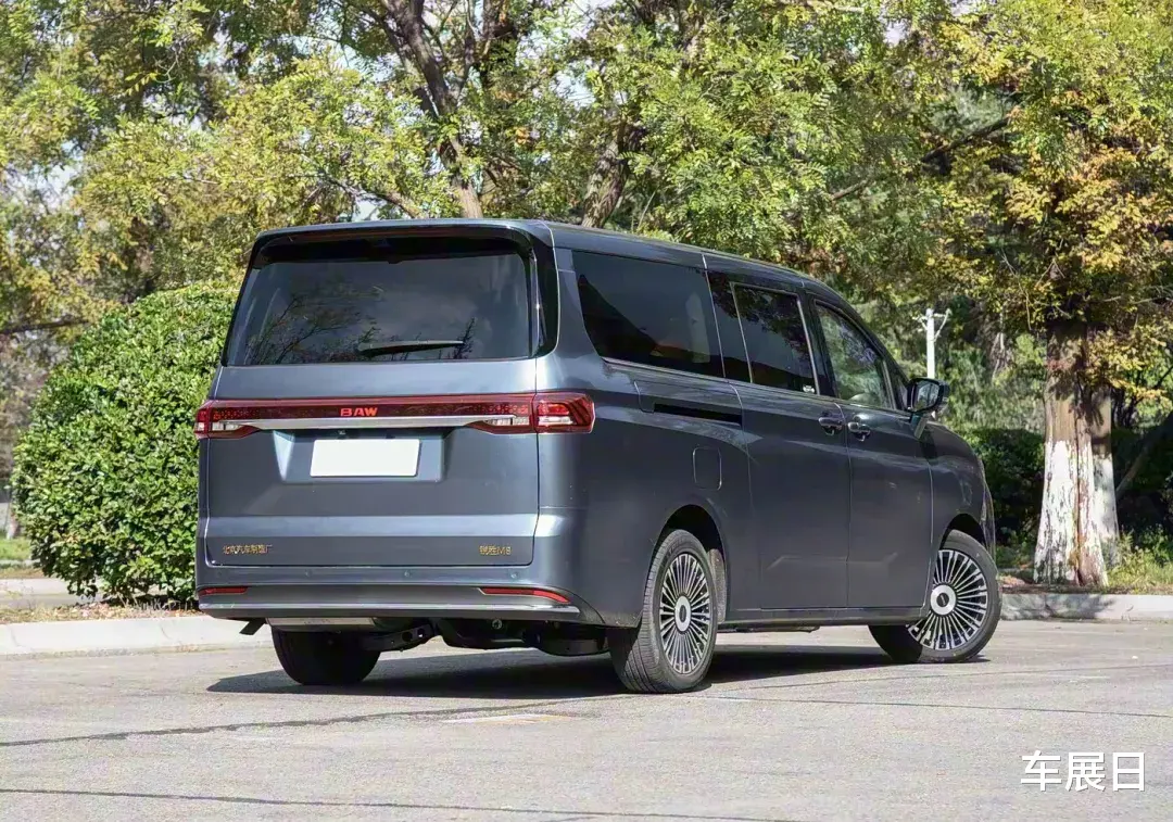 新车外观造型方正,前脸采用大尺寸前格栅搭配直瀑式镀铬前中网,大灯组与前格栅相连,前包围两侧有纵向通风开口装饰,提供7种外观颜色可选。车身侧面有优雅的内凹式腰线,隐匿了电动侧滑门滑轨,匹配密条辐铝合金轮圈。车尾部分,有一体式扰流板和贯穿式尾灯,增程版的排气系统隐藏于后包围内。车身尺寸为5317×1870×1955mm,轴距达3200mm。