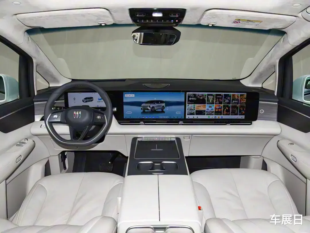 内饰方面,全液晶仪表与双色双辐方向盘搭配,中控悬浮触控屏,通道区有无线充电等功能。空间上,提供7座与9座布局,第二排为独立双座,支持电动调节、腿托等,7层人体工学座椅还具备通风、加热、按摩等功能。配置上,标配车规级高通骁龙8155芯片,并接入地平线L2级智能驾驶辅助系统。