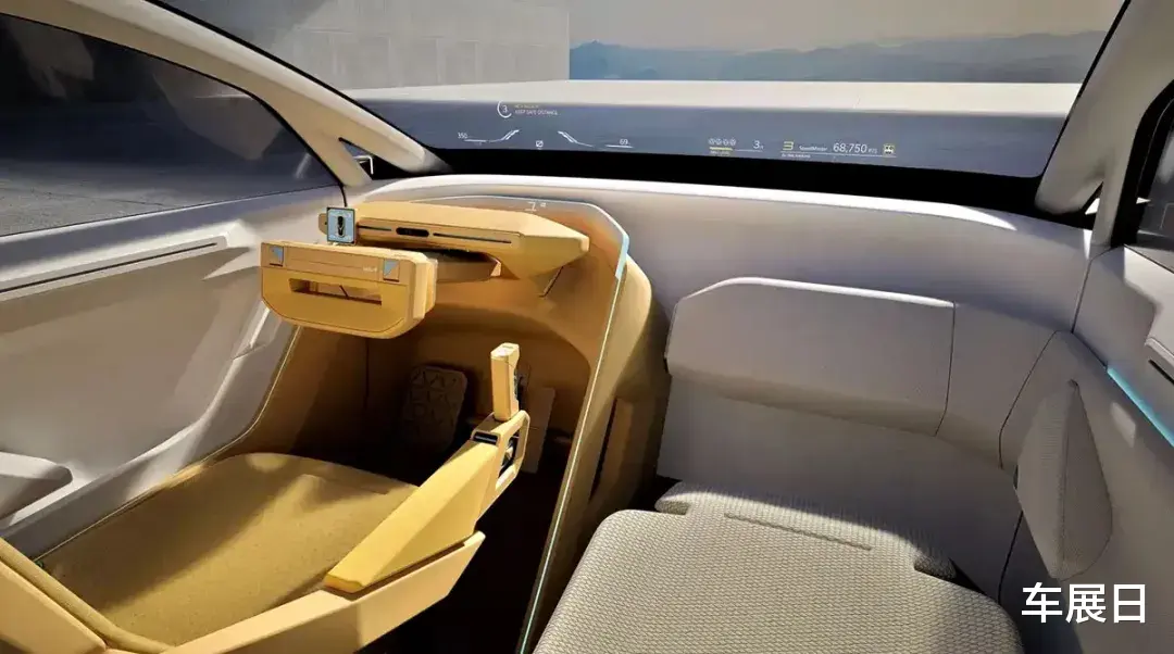 内饰方面,配备增强现实抬头显示,有极速者、梦想家、游戏玩家三种模式。有类似驾驶模拟器的方向盘和手柄,方向盘上方还有小屏幕。环抱式主驾席前方有仪表显示和面部监测系统,主副驾座椅颜色与材质分割。