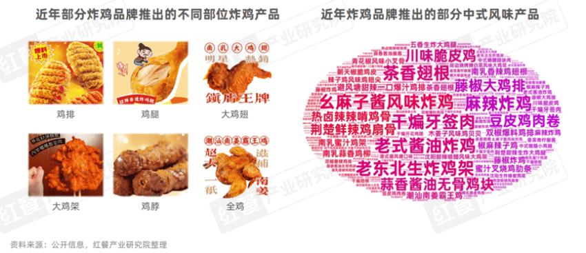 例如,正新鸡排推出了双椒爆料鸡排、避风塘甜辣一口爆汁鸡排等中式口味产品;美式炸鸡品牌Popeyes推出了荆楚鲜辣鸡扇骨、热卤辣辣啃鸡骨等中式风味产品;肯德基旗下的KFC炸鸡兄弟中式店则推出木姜子风味鸡贝贝、沈阳甜辣喷醋风味大鸡架、延边烧烤辣白菜风味大鸡架等一系列地域风味的产品。