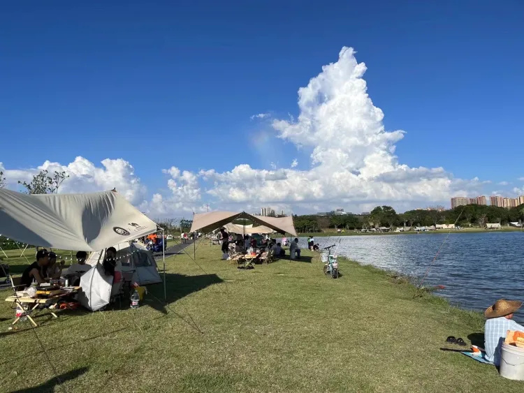蓝天白云大草地,还可以钓鱼。 露营不用收费!!!钓鱼不用收费!!! 现场也可以租设备!现场也有小贩卖食材! 但是不收拾垃圾的请不要过来。 大家都很自觉清理自己的垃圾,所以草地很干净。有流动厕所的,女生也是非常方便的。 位置:洲尾围公园