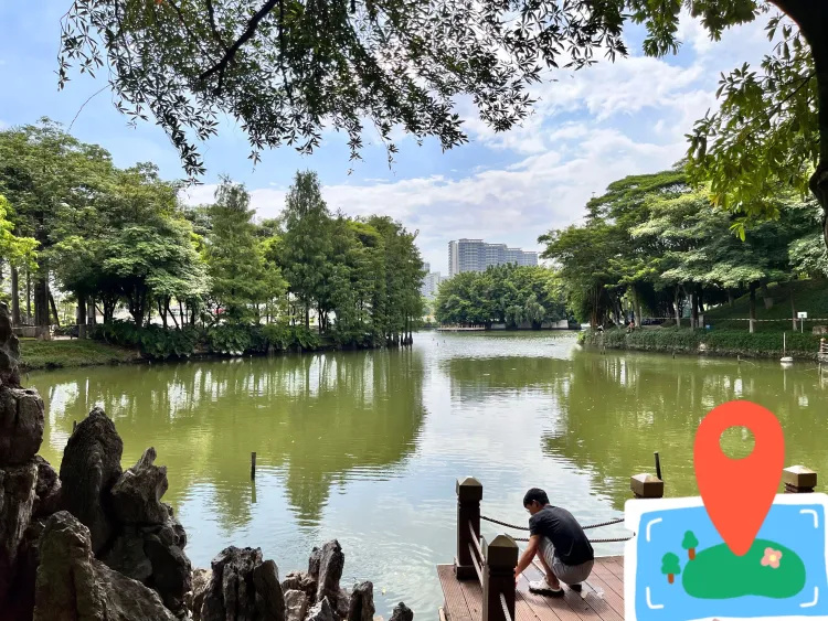 环境很棒! 其实总的一圈走下来,不算很大的一个公园,都围绕着湖边溜达。 钓鱼的人零星分布在湖边,去的那一天天气多云,就不会很晒。 来这里,你可以选择地铁到北滑大道站81口或北滘园公交总站。 地铁站靠近公园的这一侧目前在修建,所以围起来了。 公园里有个游船码头,估计是停运了,没看到有人使用这个项目很恰意的地方哦,值得来走走,安静舒适~北滘公园!