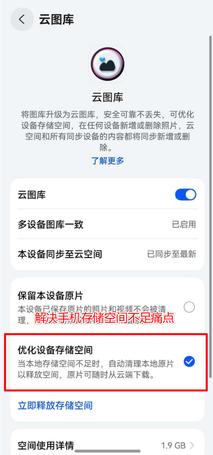 哪怕存了几千张高清原图和一百多个4K视频,勾选了“优化设备存储空间”后,手机会自动把本地不常用的素材会自动替换为占地很小的预览图,而原图安全地同步在云端。这招“瘦身法”真的绝,既释放了本地存储空间,又不影响我随时翻看。