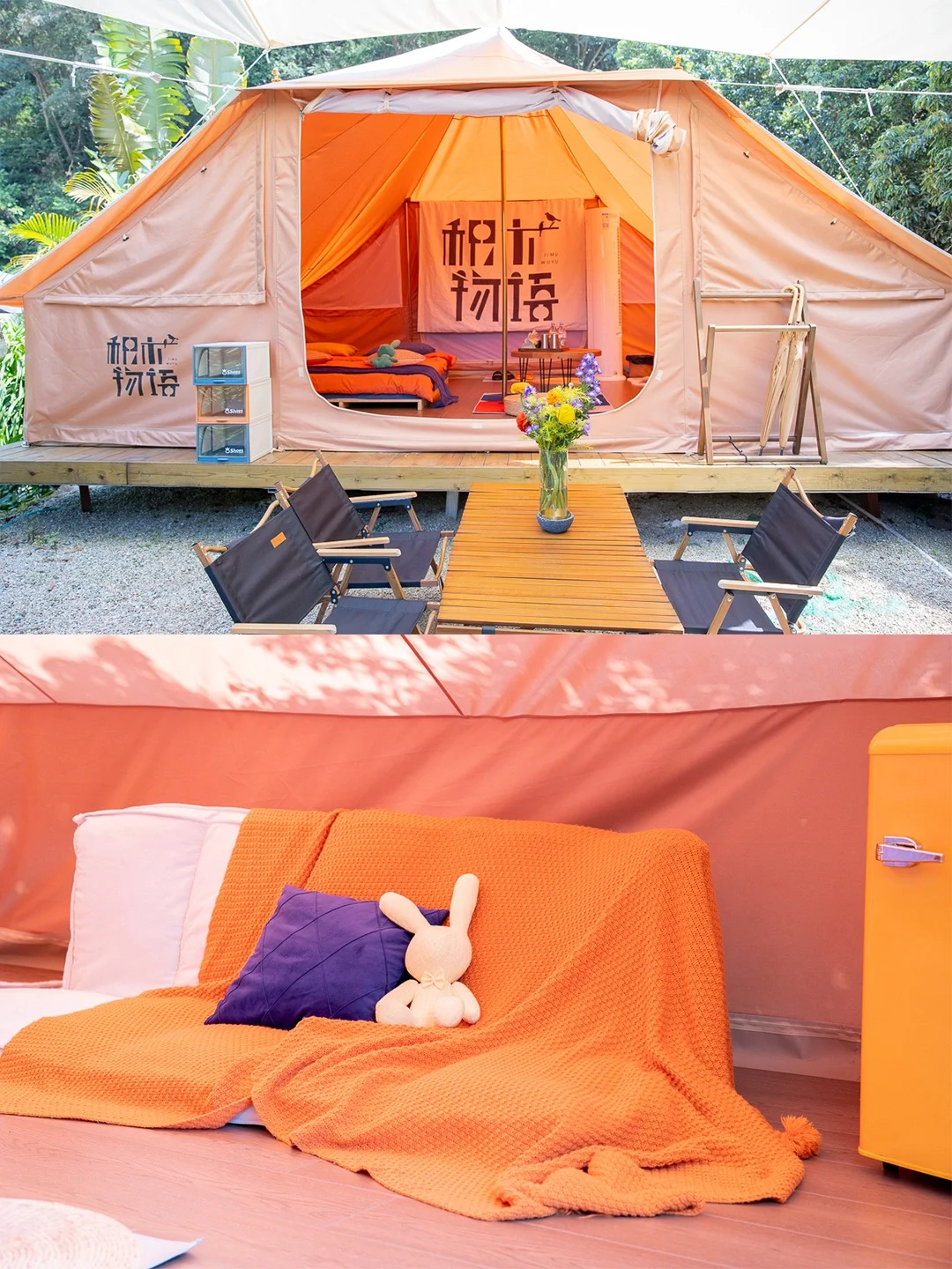 ▫️有闻溪、望山、庭院、三种特色房型可供选择~,主打的就是亲子度假游,多娃家庭也能轻松舒适的在帐篷内放松休憩