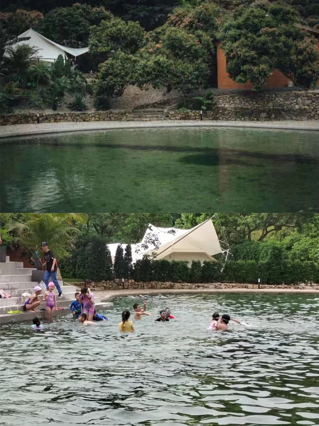 超大的山泉泳池可以沉浸式在自然中肆意玩耍,山泉水清澈冰凉,简直是盛夏中的消暑神奇!免费的浆板、浮床、水枪、泳圈随便玩🛟