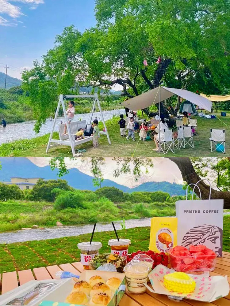 地址: 广州市从化区良口镇 营地推荐 露营地就在小溪边上,一大片绿色的草地,充满了原生态气息。 营地配套 独立卫浴、洗漱用品、空调、吹风机、烧水壶、蛋卷桌、椅子、1.5米床、含早餐每个帐篷都配备了超齐全的日用品,可以说是非常贴心了 户外娱乐 营地前超大户外草坪,野餐下午茶、放风筝u、荡秋千、组织游戏,小朋友可以尽情的奔跑玩要。无论是亲子周边游、朋友度假、团建聚会都非常适合 周边游玩 石门国家森林公园 溪头村 流溪河国家森林 公园宝趣玫瑰园