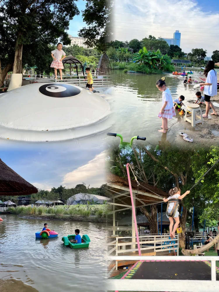 还有组合秋千、林下爬网、溜索、沙溪戏水、居然还可以捉鱼真的玩上一整天都不腻!