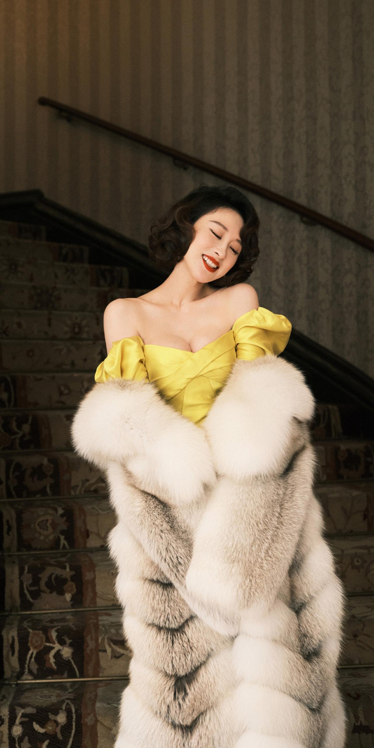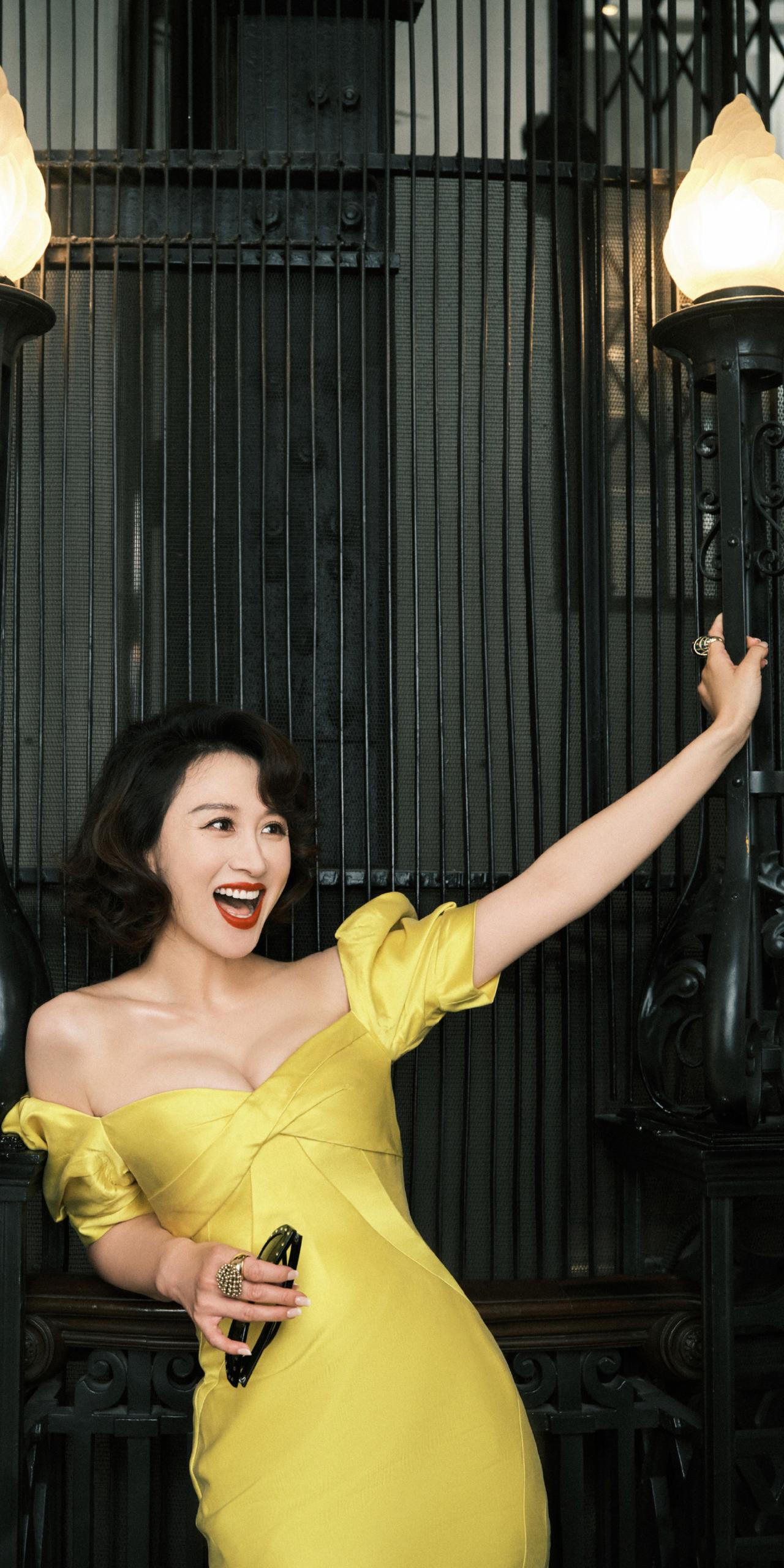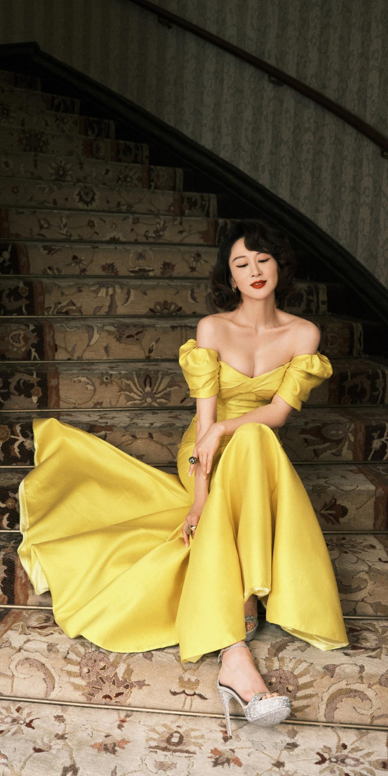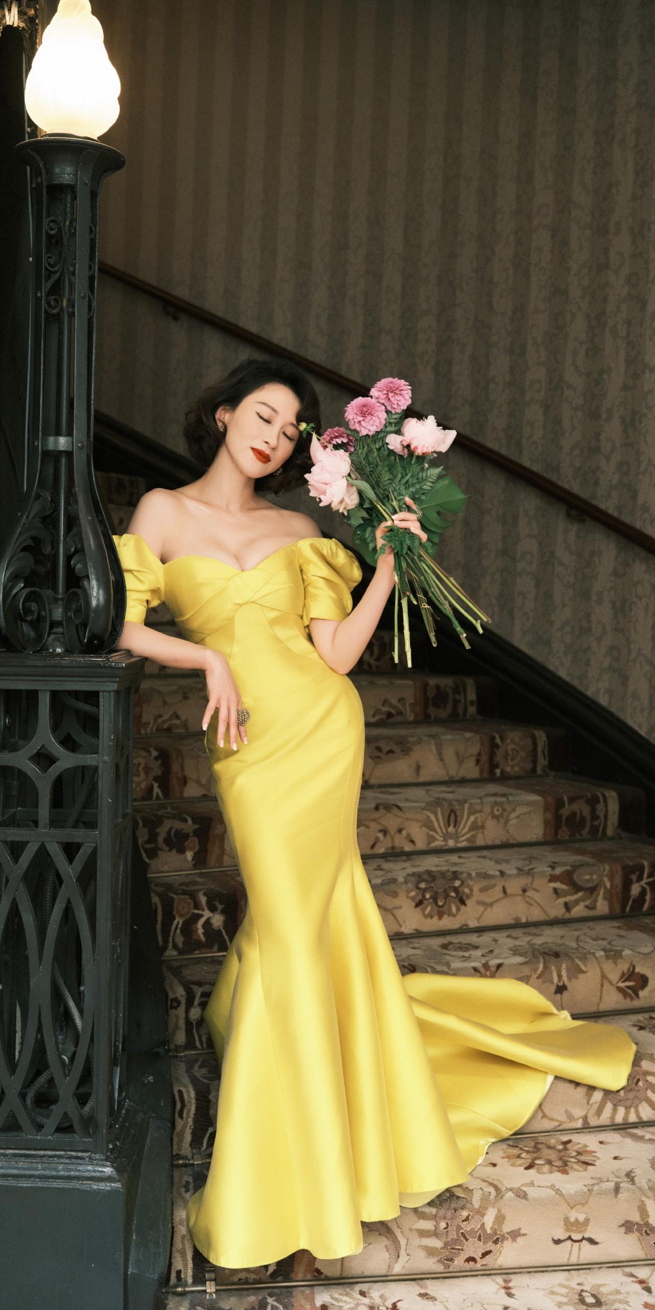 练练黄色礼服裙写真壁纸。