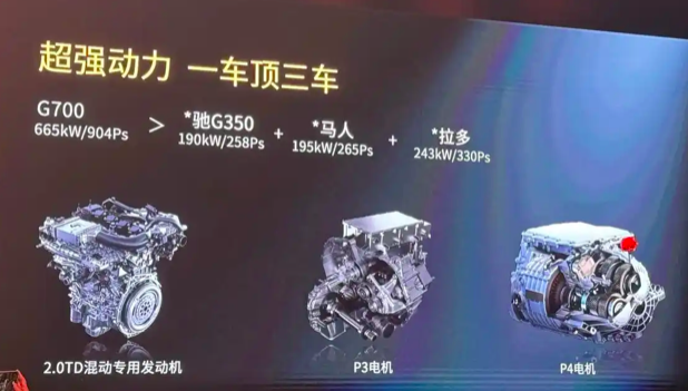 G700搭载鲲鹏超能混动CDM-O系统,系统总功率665kW,总扭矩1135N·m,百公里加速4.6s,媲美豪华性能车V8发动机。全系标配智能三把锁、内高压一体大梁,同级唯一核心零部件IP68级防水,320mm最大离地间隙、970mm涉水深度。集强动力、长续航、强越野、高安全、强脱困、强涉水于一身,G700以硬核实力重塑性能边界。