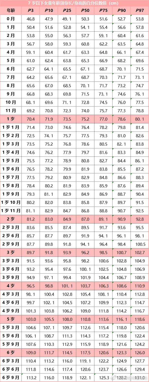 [微风]孩子身高处在P3~P97之间,都是正常的