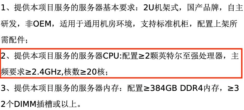 投诉事项:招标文件中服务名称为智能数据中枢平台服务的技术服务要求中的 2、提供被投诉项目服务的服务器 CPU:配置 ≥ 2 颗英特尔至强处理器,主频要求 ≥ 2.4 GHz,核数 ≥ 20 核;存在采购文件中指定或者变相指定服务器的 CPU 品牌为英特尔,直接排除其他处理器品牌供应商,指定的 CPU 品牌英特尔为国外品牌违反“优先采购国产产品”的政策导向(《政府采购法》第十条)且服务器 CPU 国产品牌众多如(鲲鹏、海光、飞腾、兆芯),此要求不合理,具有差别性、歧视性、排他性要求,违背公开、公平原则。