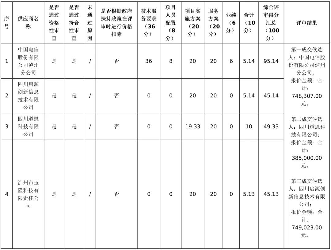 2025 年 11 月 17 日发布中标结果,中国电信股份有限公司泸州分公司 748,307.00 元(中)。