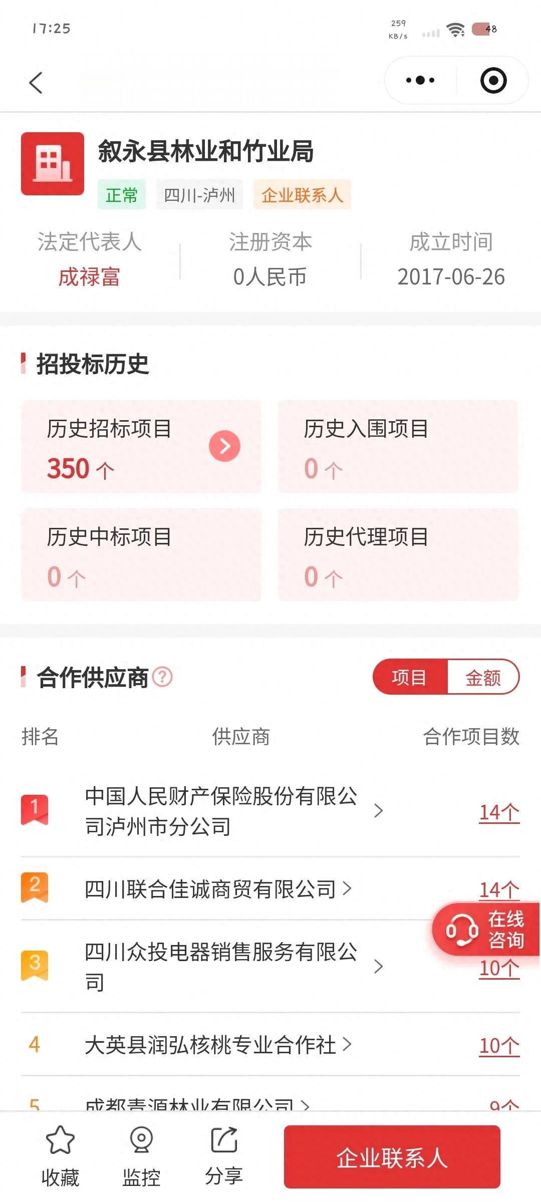 2025 年 11 月 3 日,叙永县林业和竹业局发布《2024 年国有林管护补助资金建设项目(林场数智系统建设)》竞争性磋商公告,预算 75 万元。