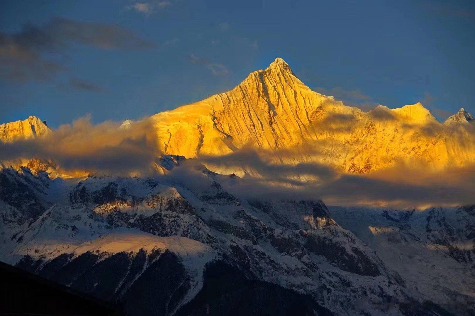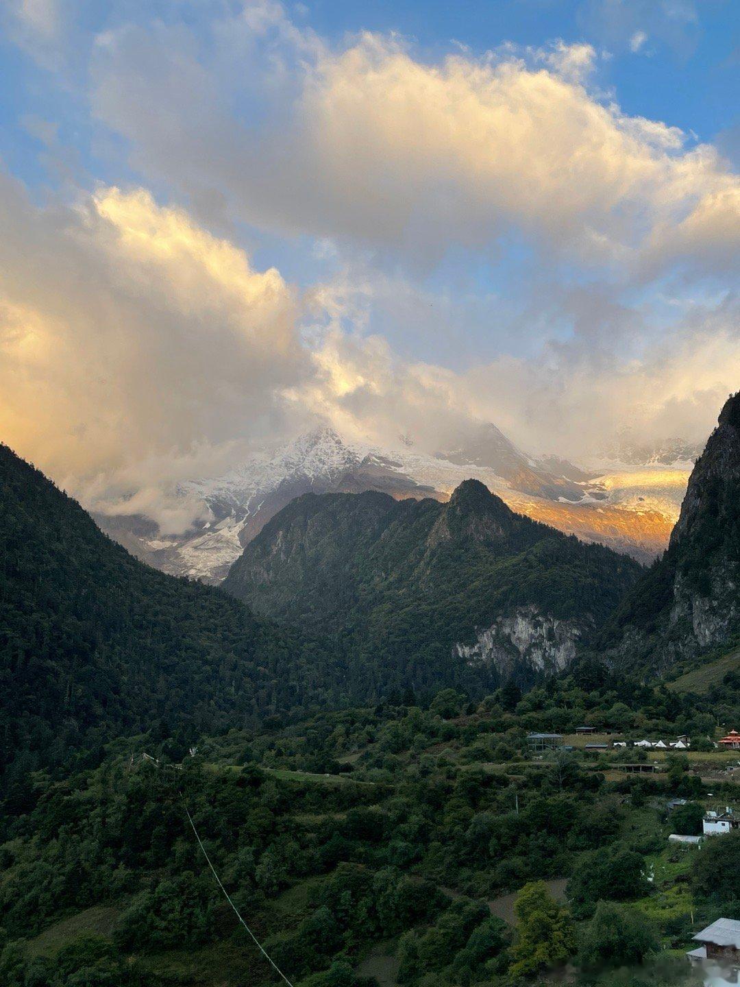 看到的人能幸运一整年。一直留着这个念想,每一个来的人都心心念念地想要看,早上6:00多都能起来床了,架着相机手机无人机裹着厚厚的羽绒服蹲在那里等。连续三天,到了最后一天才看到一些,那种大自然的魔力瞬息万变的感觉真的太惊艳太惊喜了!其实到山上那种浓雾朦胧,只露出雪山的一角冰川时,没看见全貌时,会更想看,更期待。遇见的就是最好的,遗憾也很美。