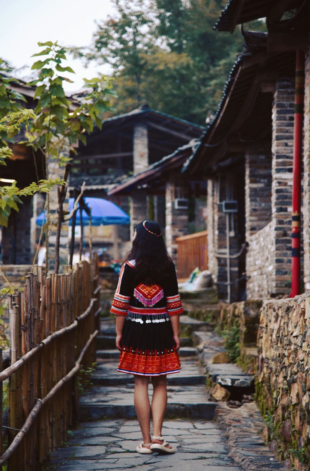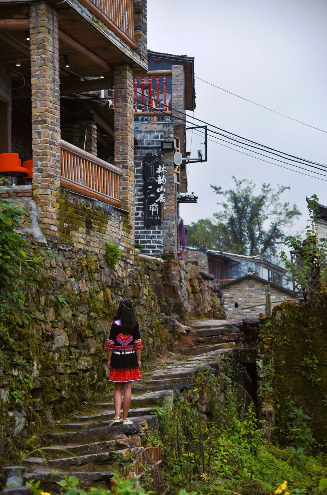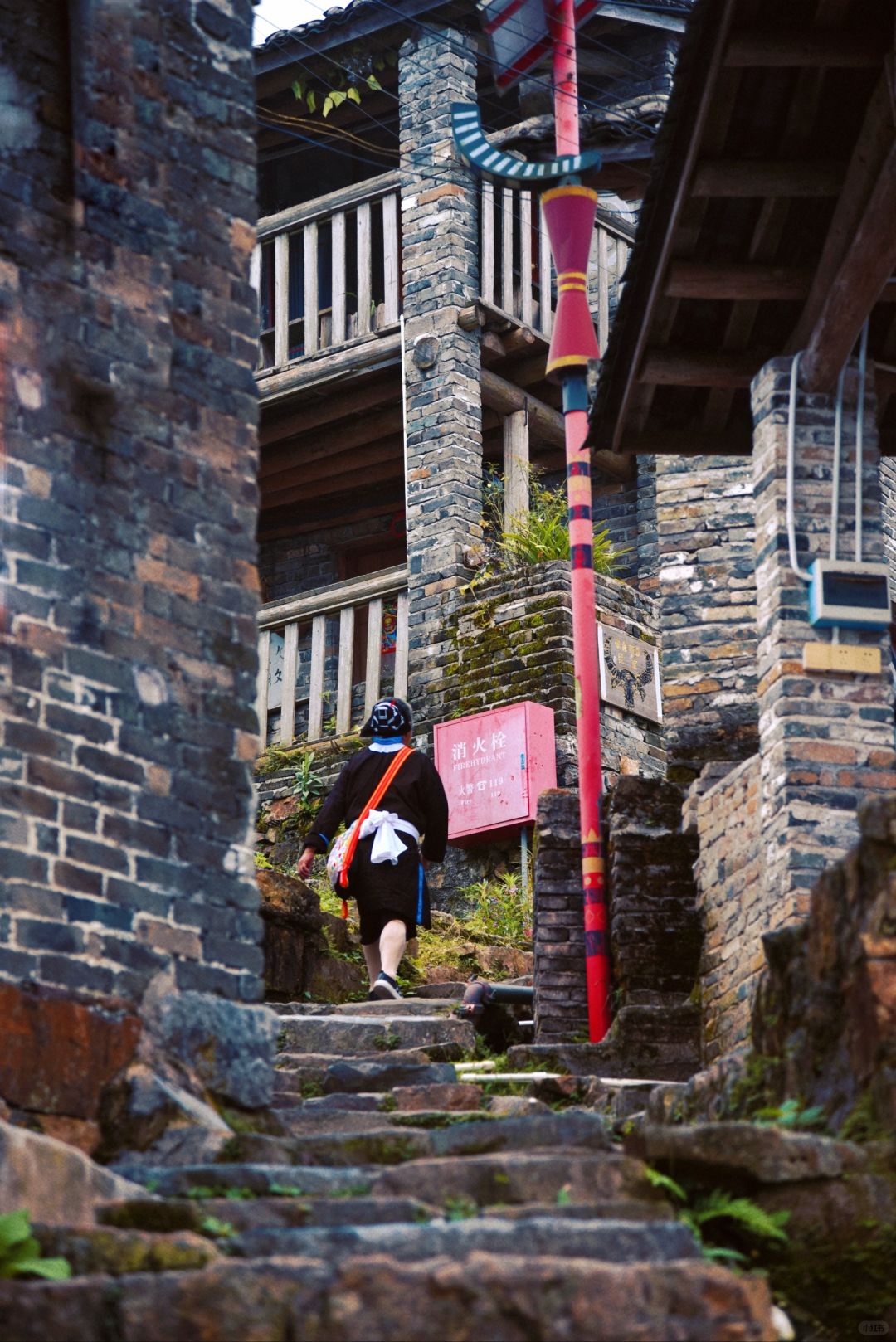 ②、依山而建的寨子里,石板道纵横交错,主次分明。从主寨道两旁延生出去的小道上,人就明显少了很多,也有可能遇见不一样的风景