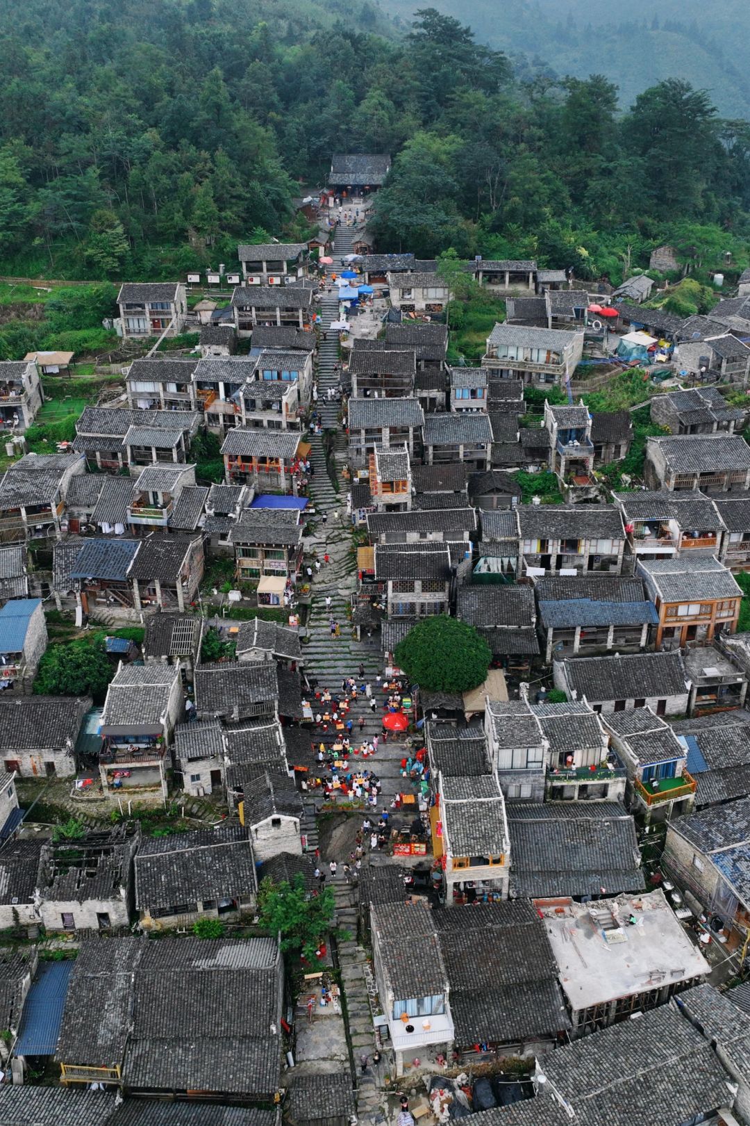 瑶寨依山而建,房屋层层叠叠,坐落有致
