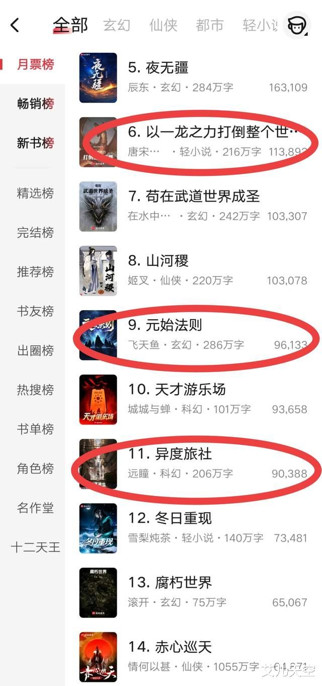 唐宋元明氢的《以一龙之力打倒整个世界》冲到第六了,再创新高,作者说这个月均订涨了大概六千,接近四万了。
