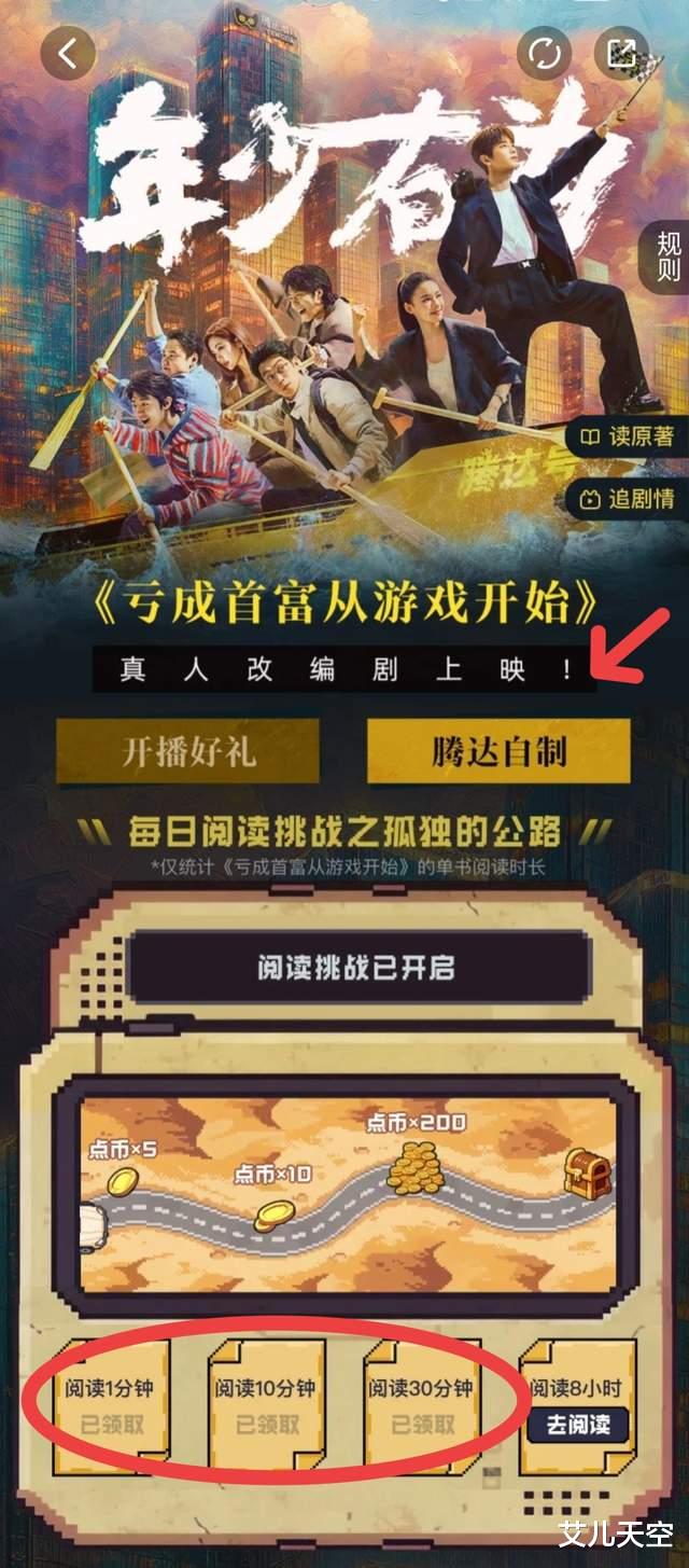 由青衫取醉封神作《亏成首富从游戏开始》改编的影视剧《年少有为》正在腾讯热播,起点这边也开了追剧活动。