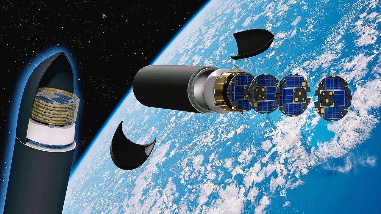 Rocket Lab 的电子号火箭(Electron)直径1.2米,DiskSat 直径1米。它几乎是贴着整流罩的内壁被塞进去的。它不再是一个被装在标准化方形容器里的货物,它直接利用了火箭本身的几何极限。