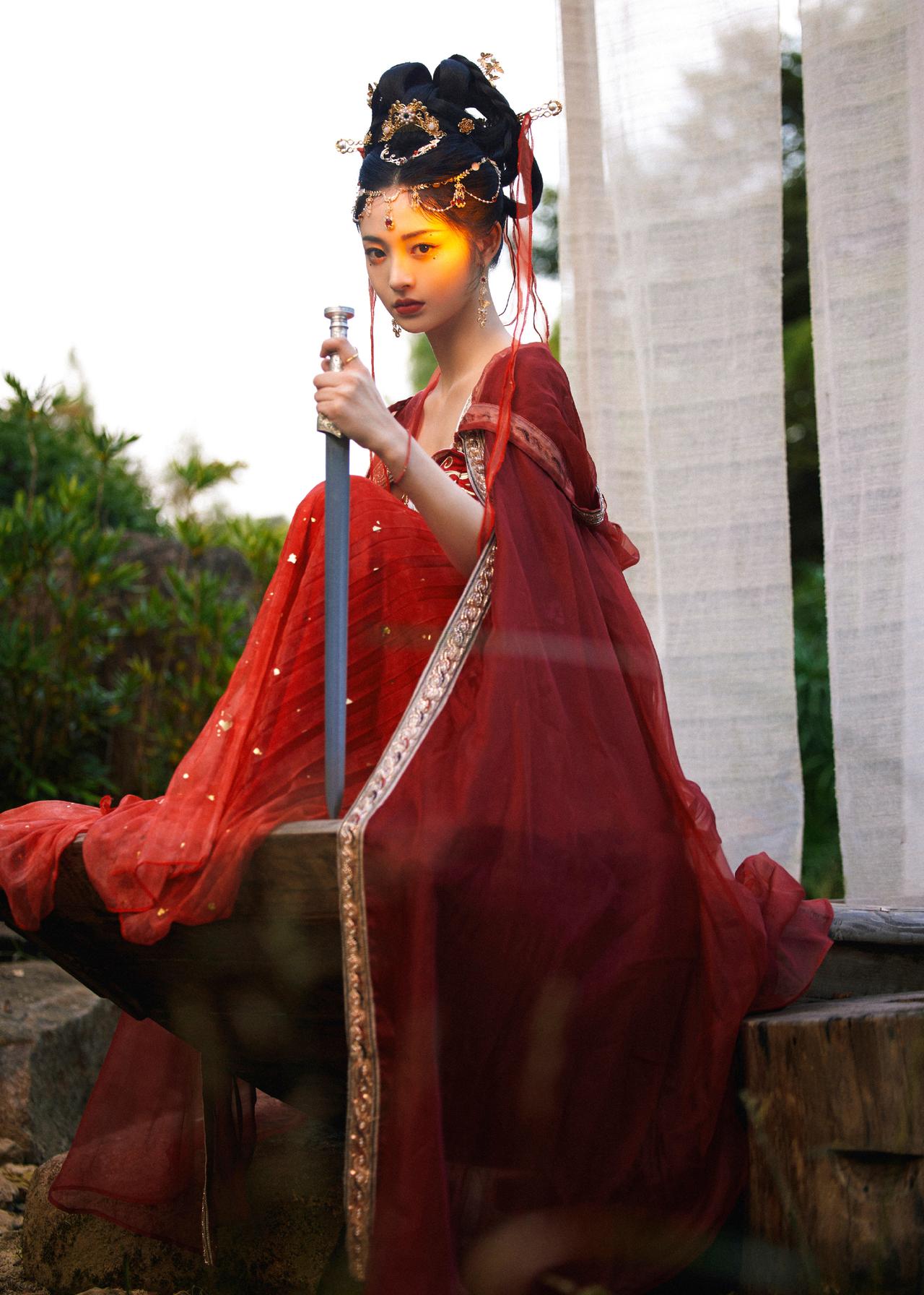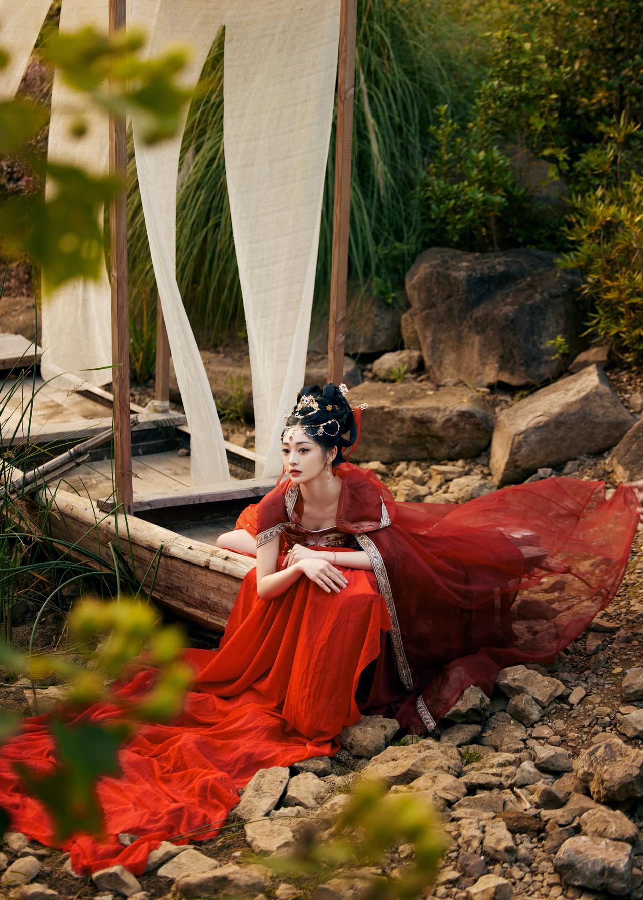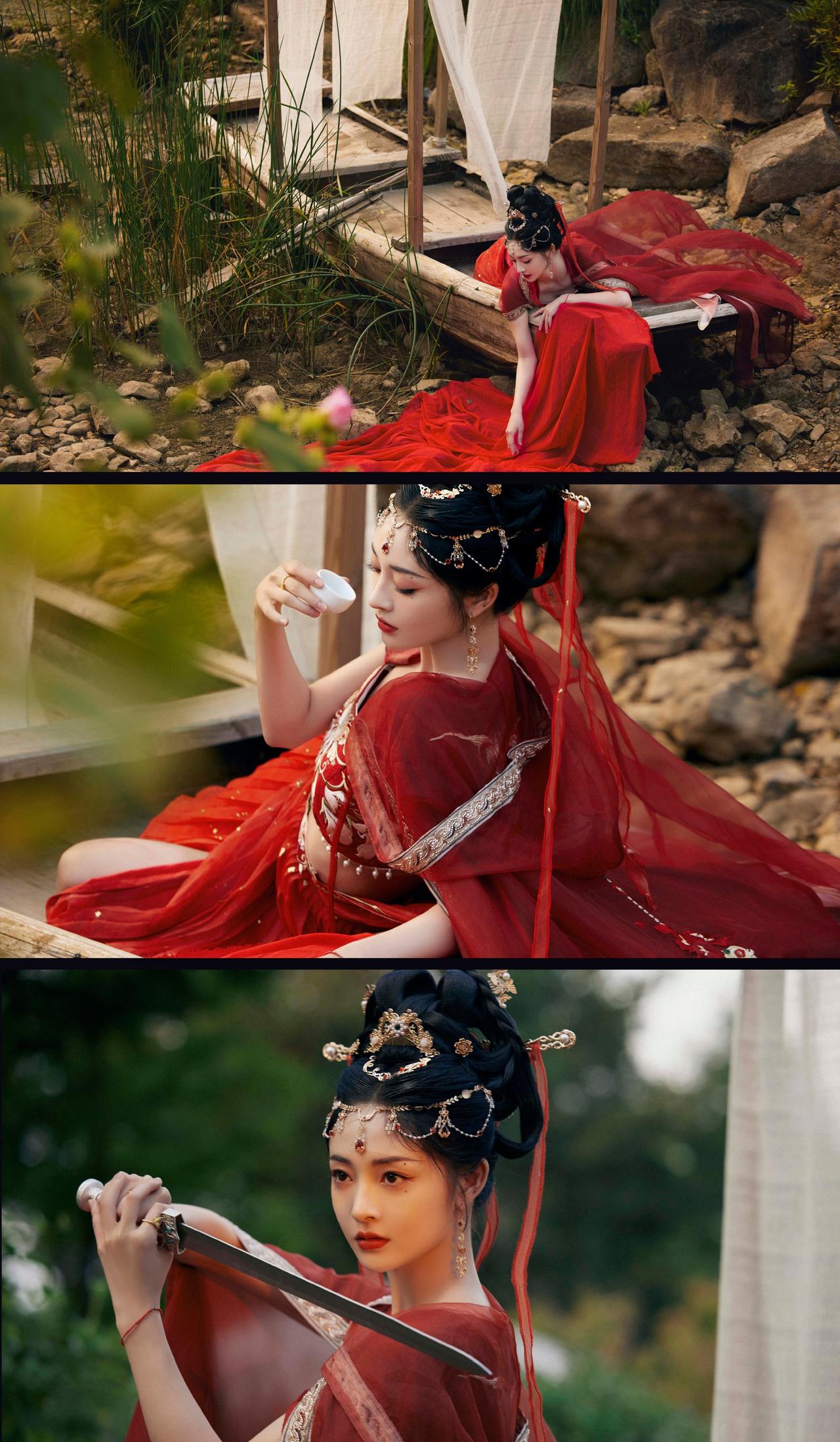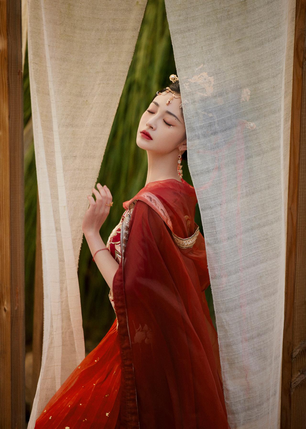 周洁琼红衣古装风大片:红衣入梦,衣袂飘飘,轻舞霓裳,明眸流盼,再现国色风华。#妙