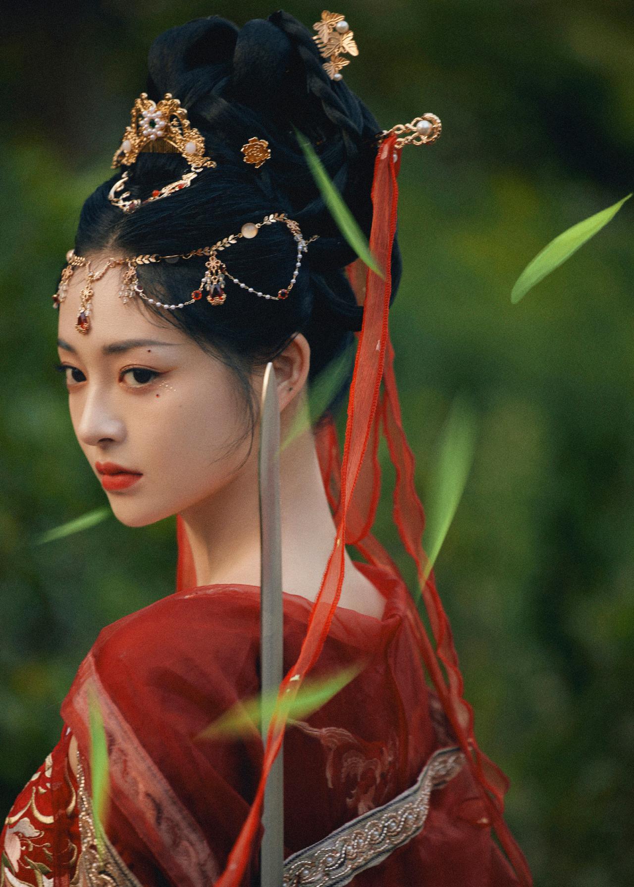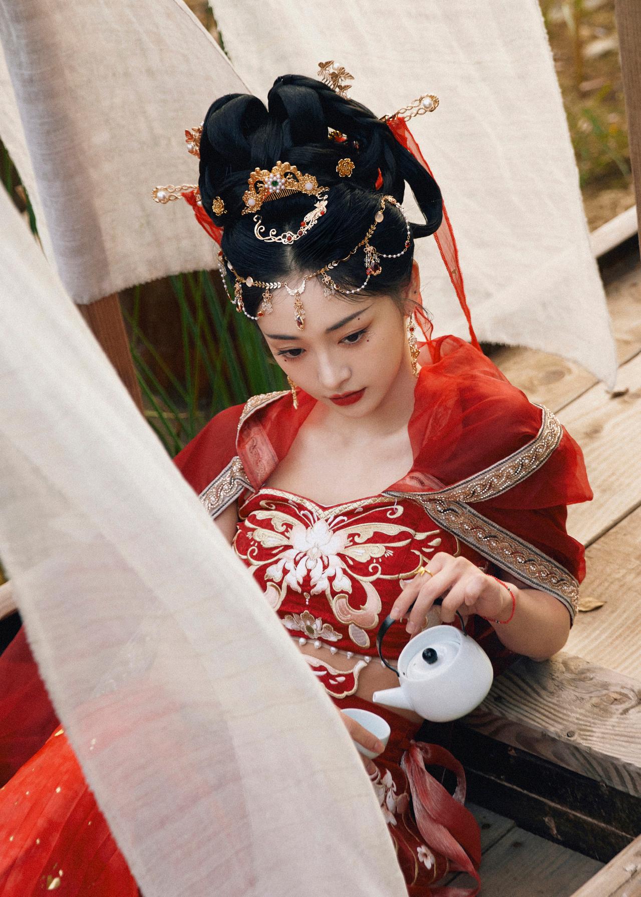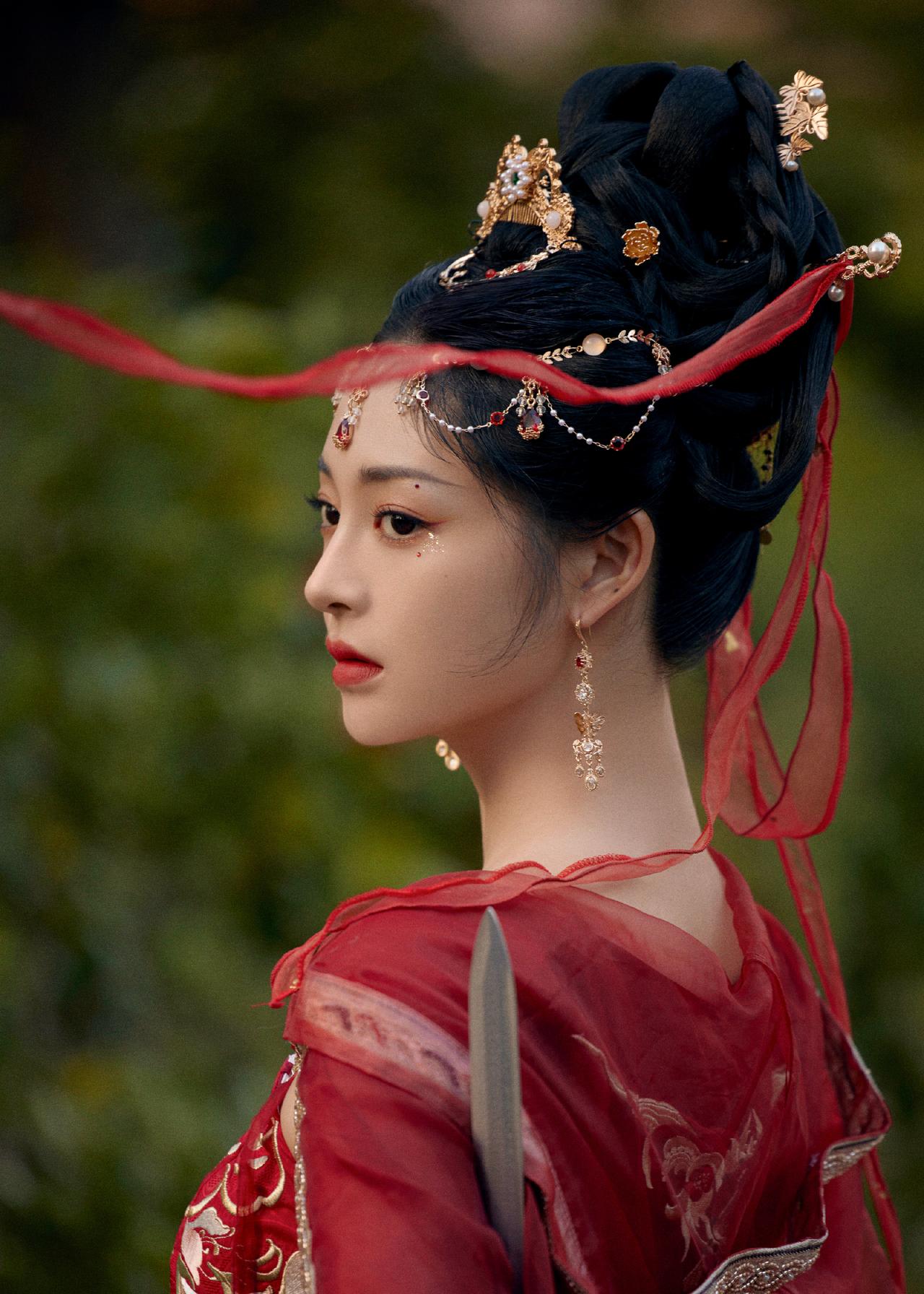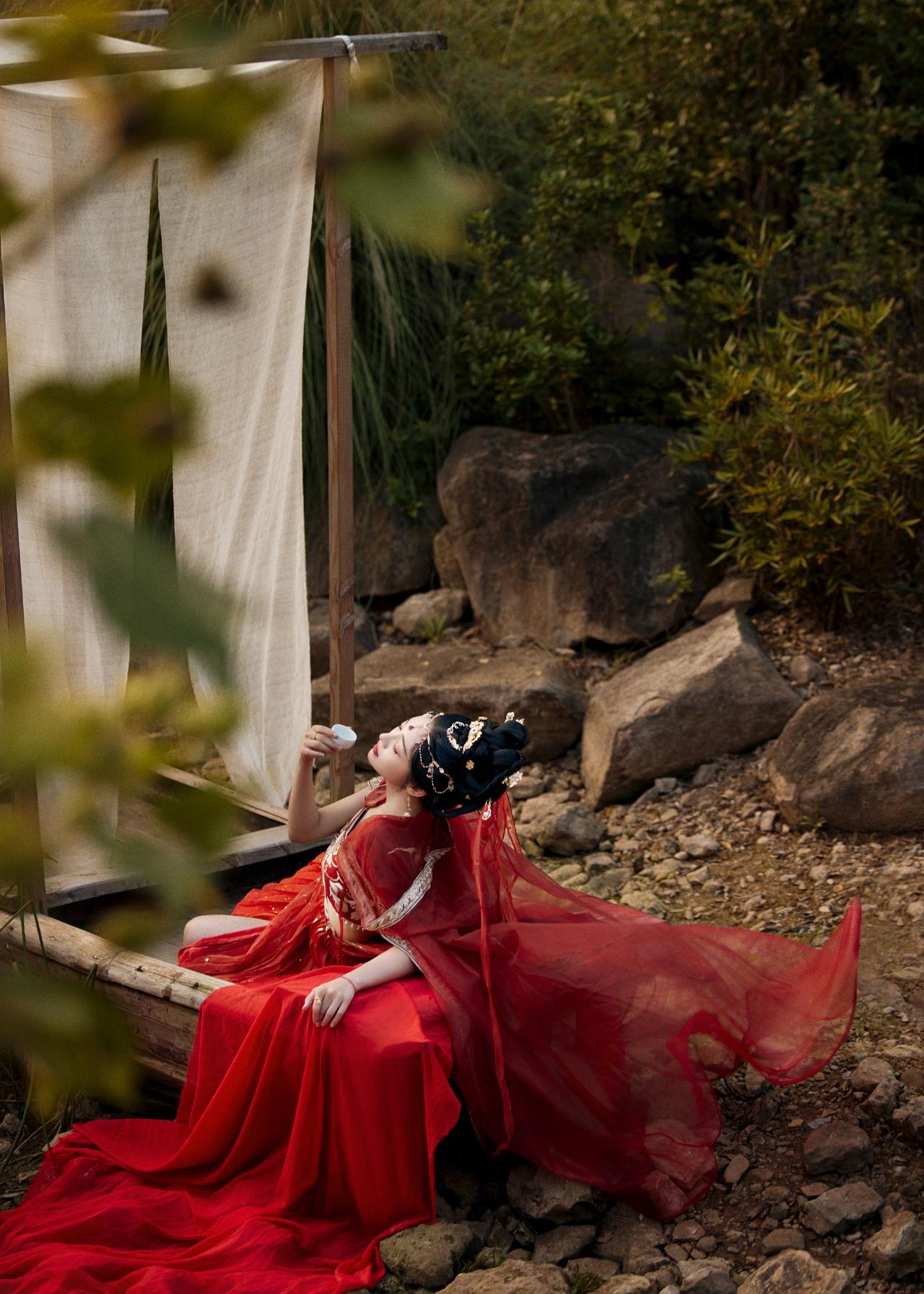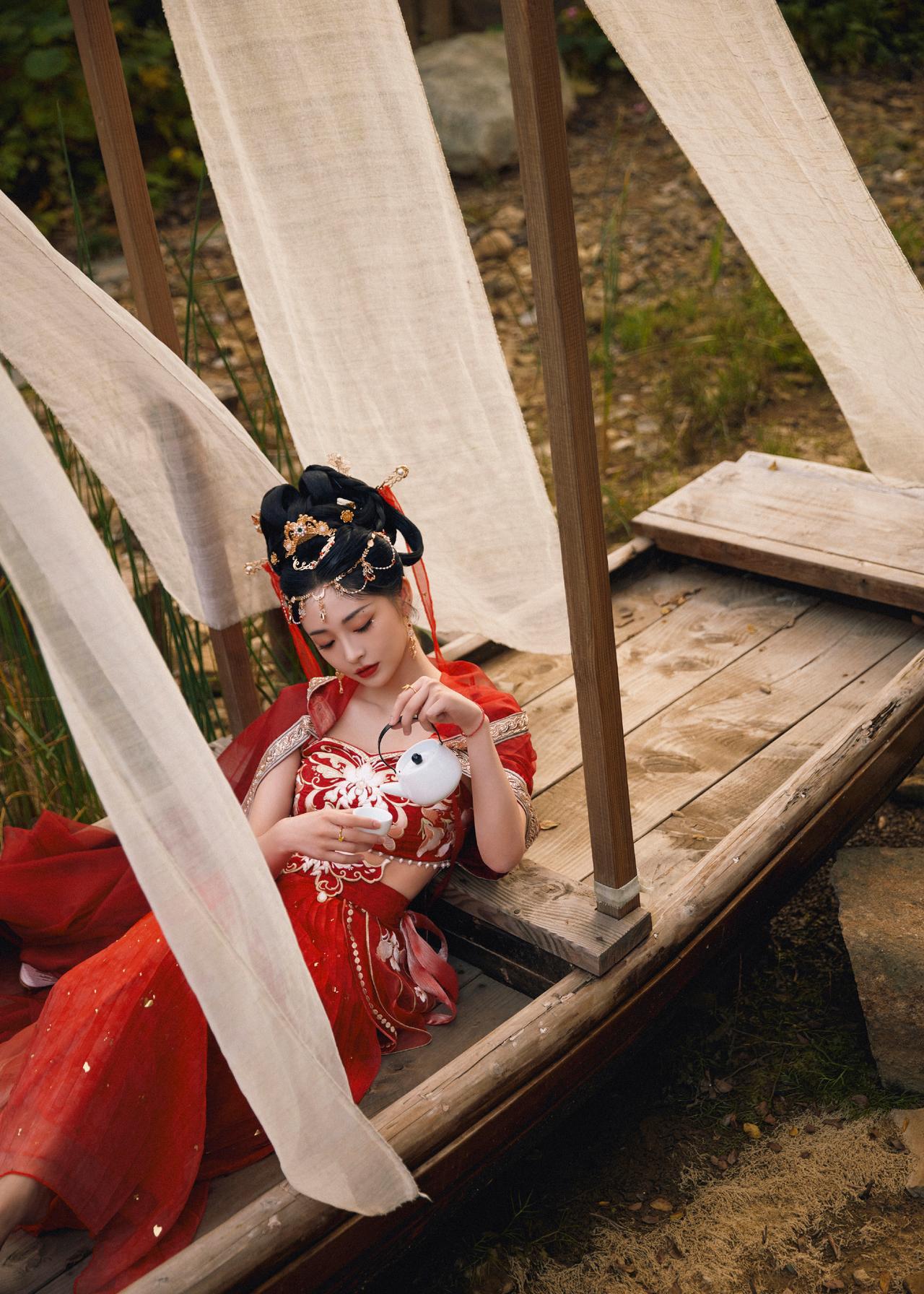 周洁琼红衣古装风大片:红衣入梦,衣袂飘飘,轻舞霓裳,明眸流盼,再现国色风华。#妙