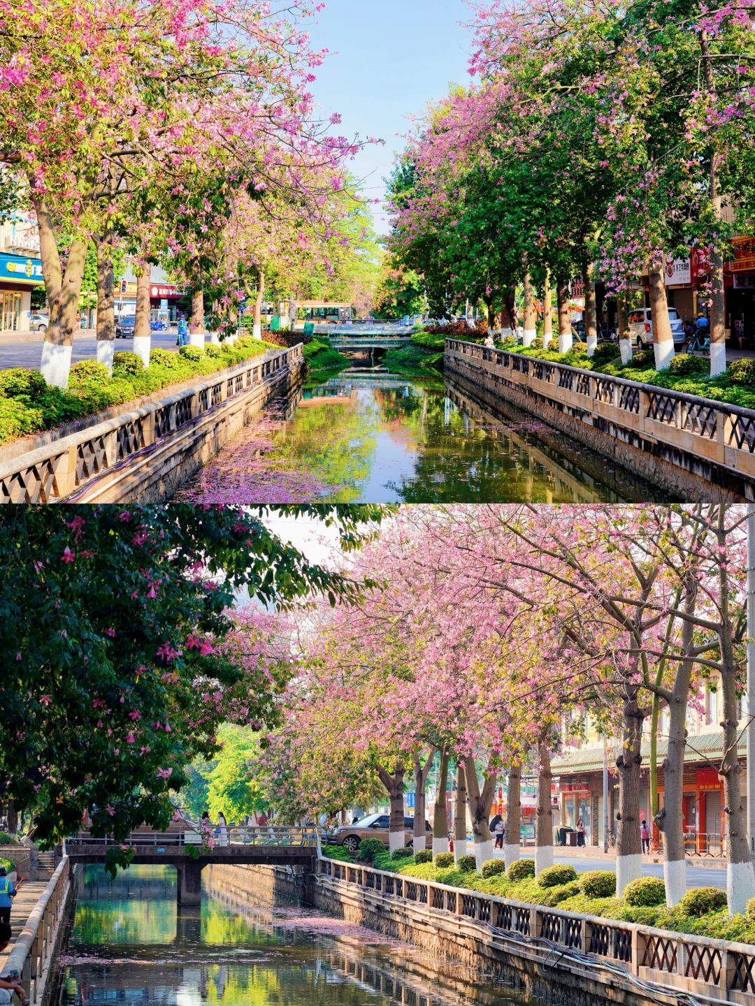 粉色的异木棉、火红的落羽杉……