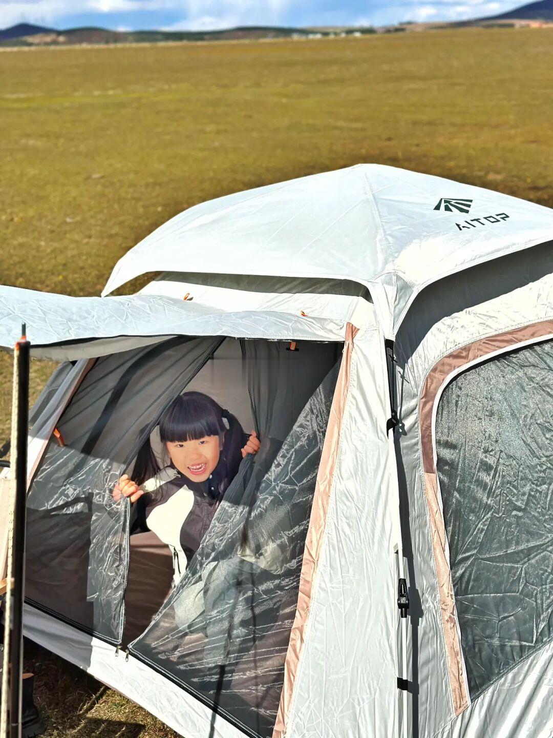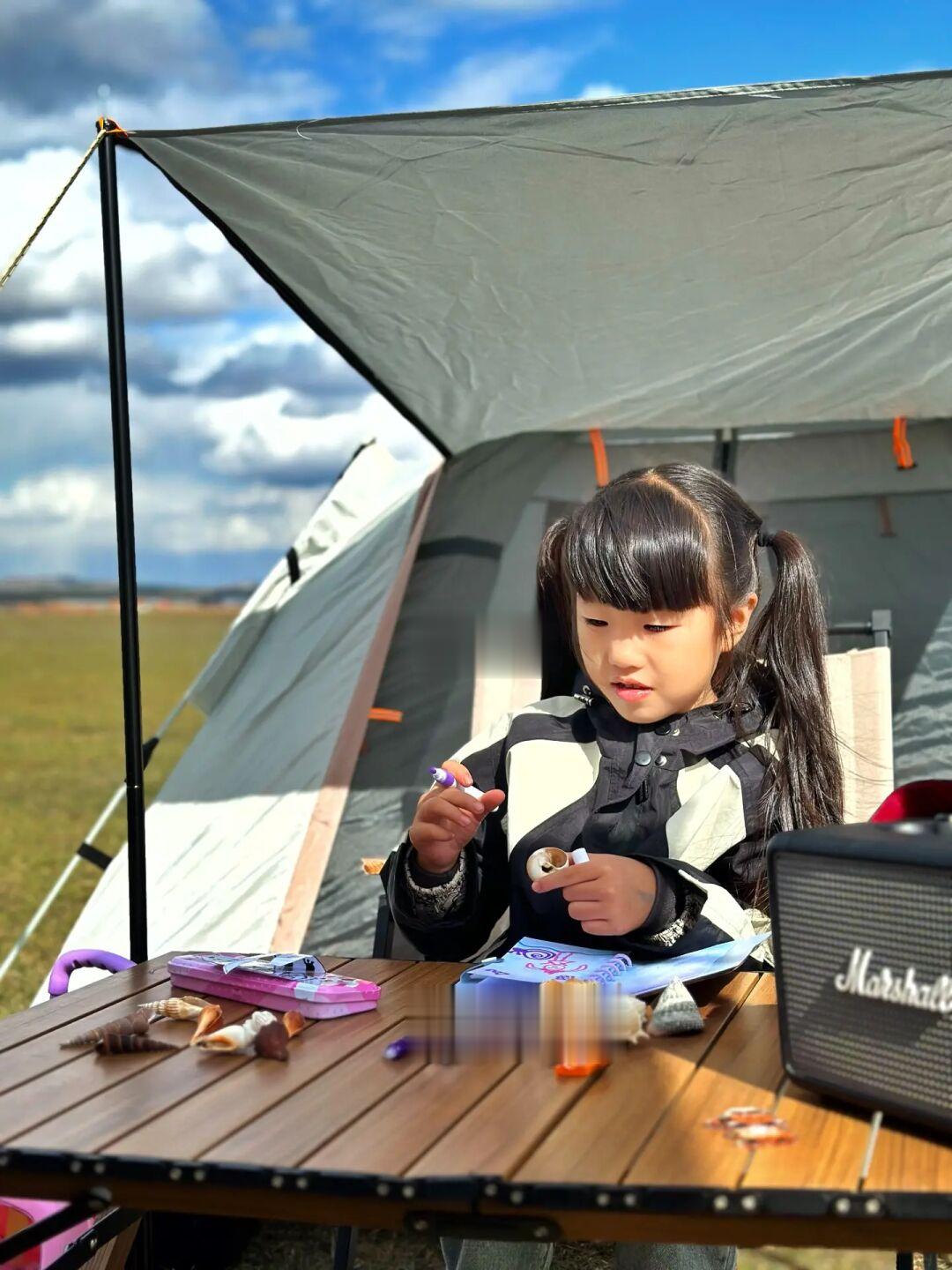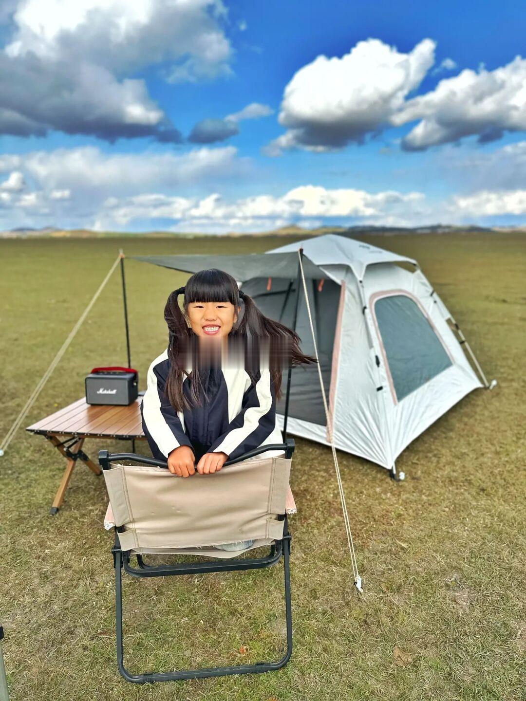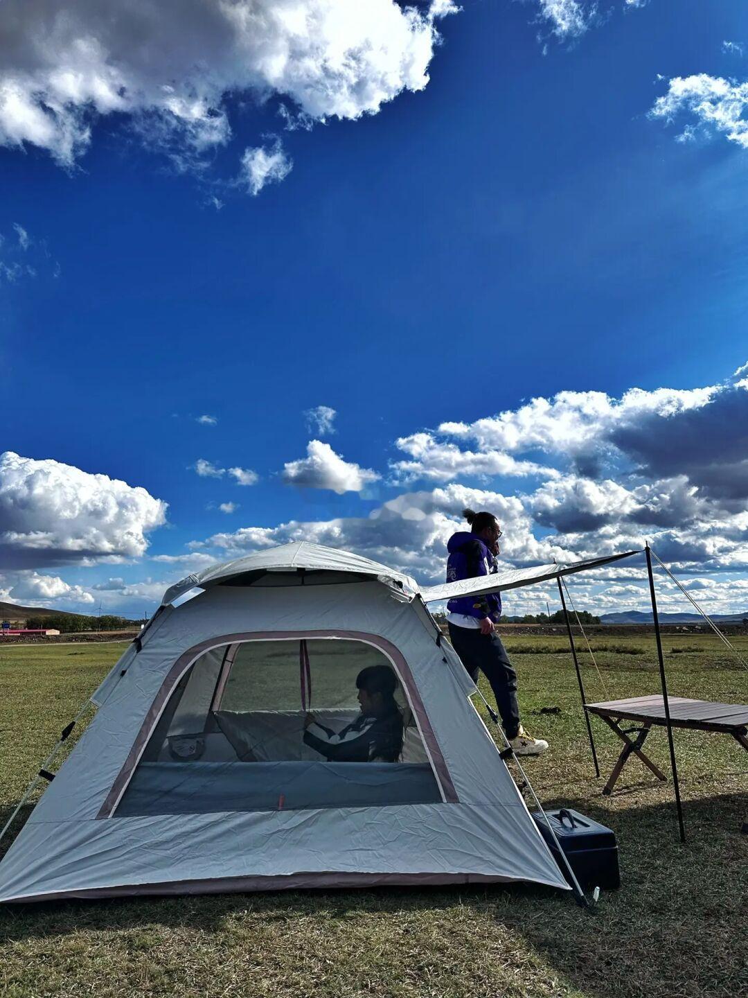 选对好的帐逢,在露营中可以省去许多麻烦。首先,它要安全、轻盈、好搭建。其次,它的空间、舒适度、防御性能等都是需要考虑的。这次出门,我们带的是牧。 自动速开帐篷它采用了一体式全自动杆设计,所以整体很轻盈,搬起来不重,一拉一抖轻松就能打开。我和媳妇只需打好地钉,帐篷就搭建好了。帐篷是独立顶批涂银防晒,拿掉后是透明观景大天窗,再加上天幕客厅+落地大窗门,孩子们躺着就能感受窗外的自然,高密网纱窗能防蚊虫打扰,秋日露营必不可少。