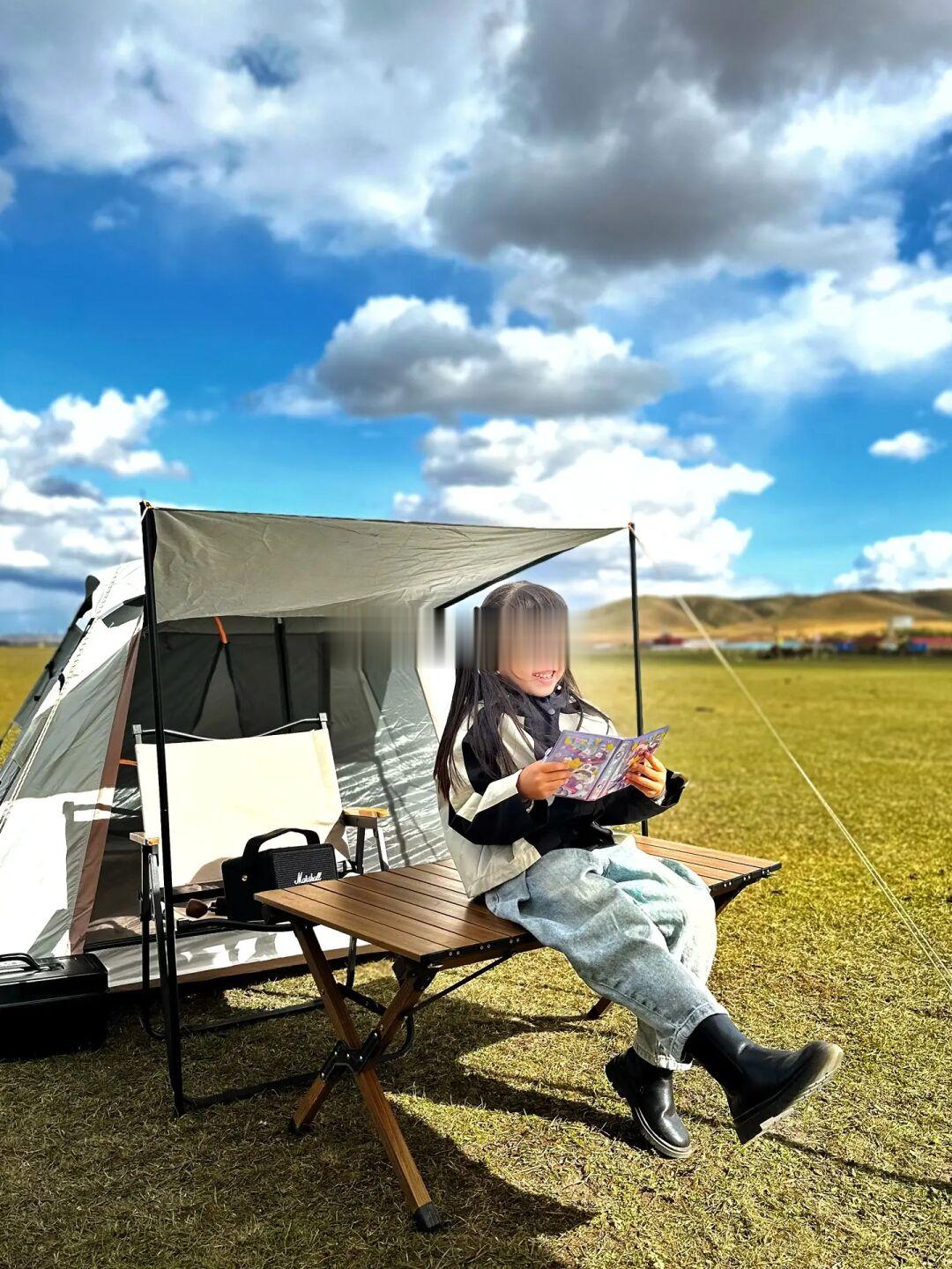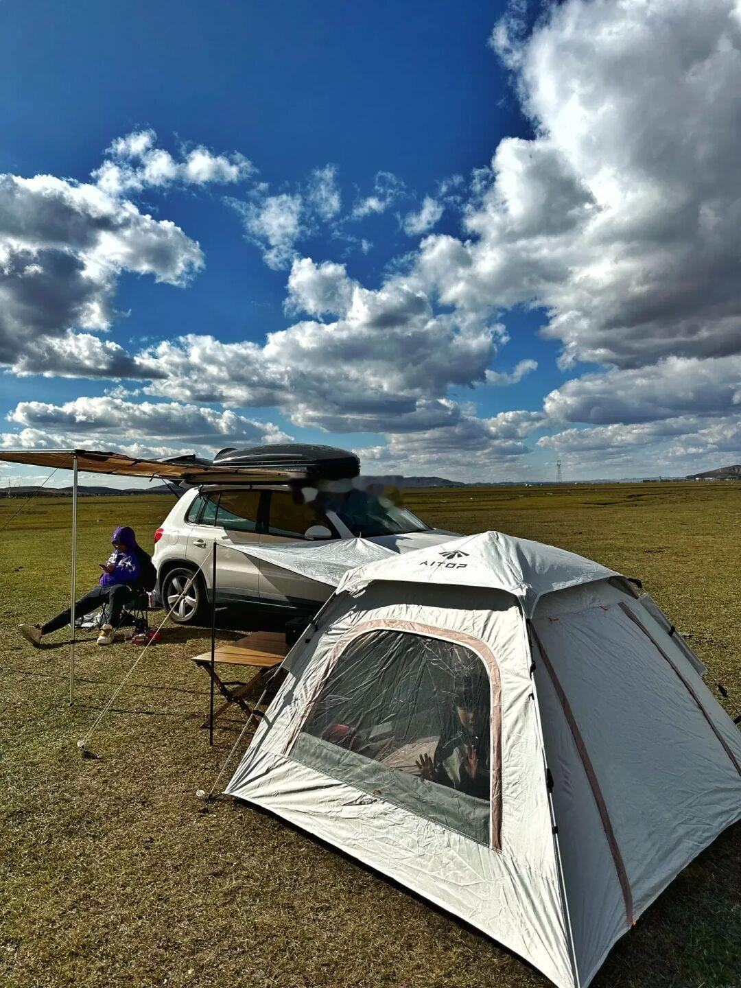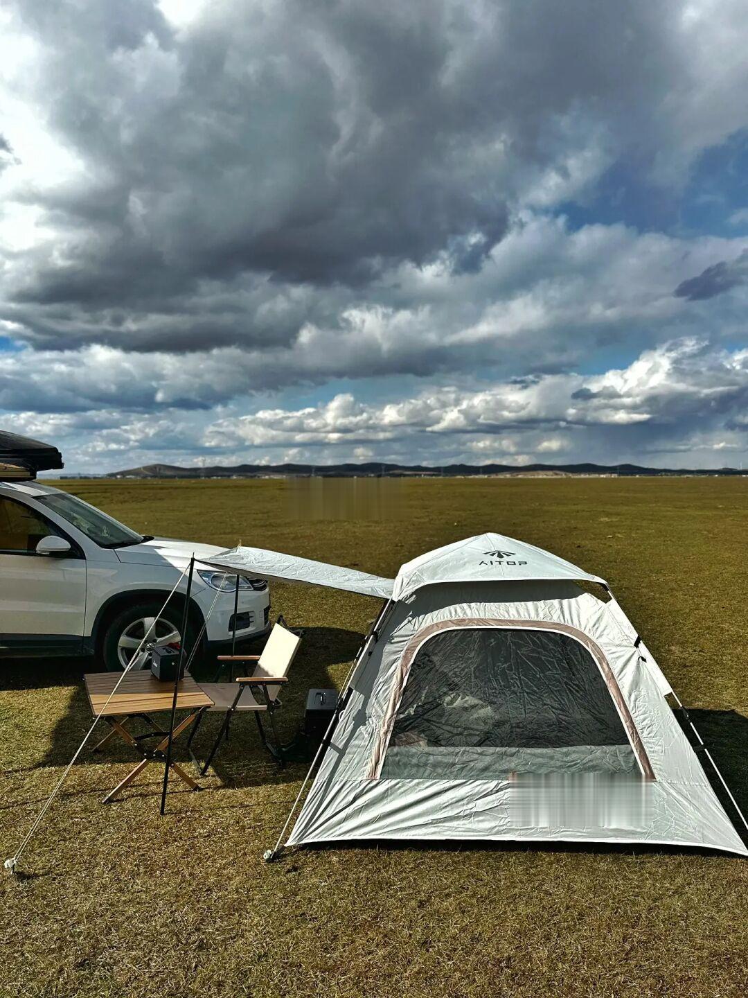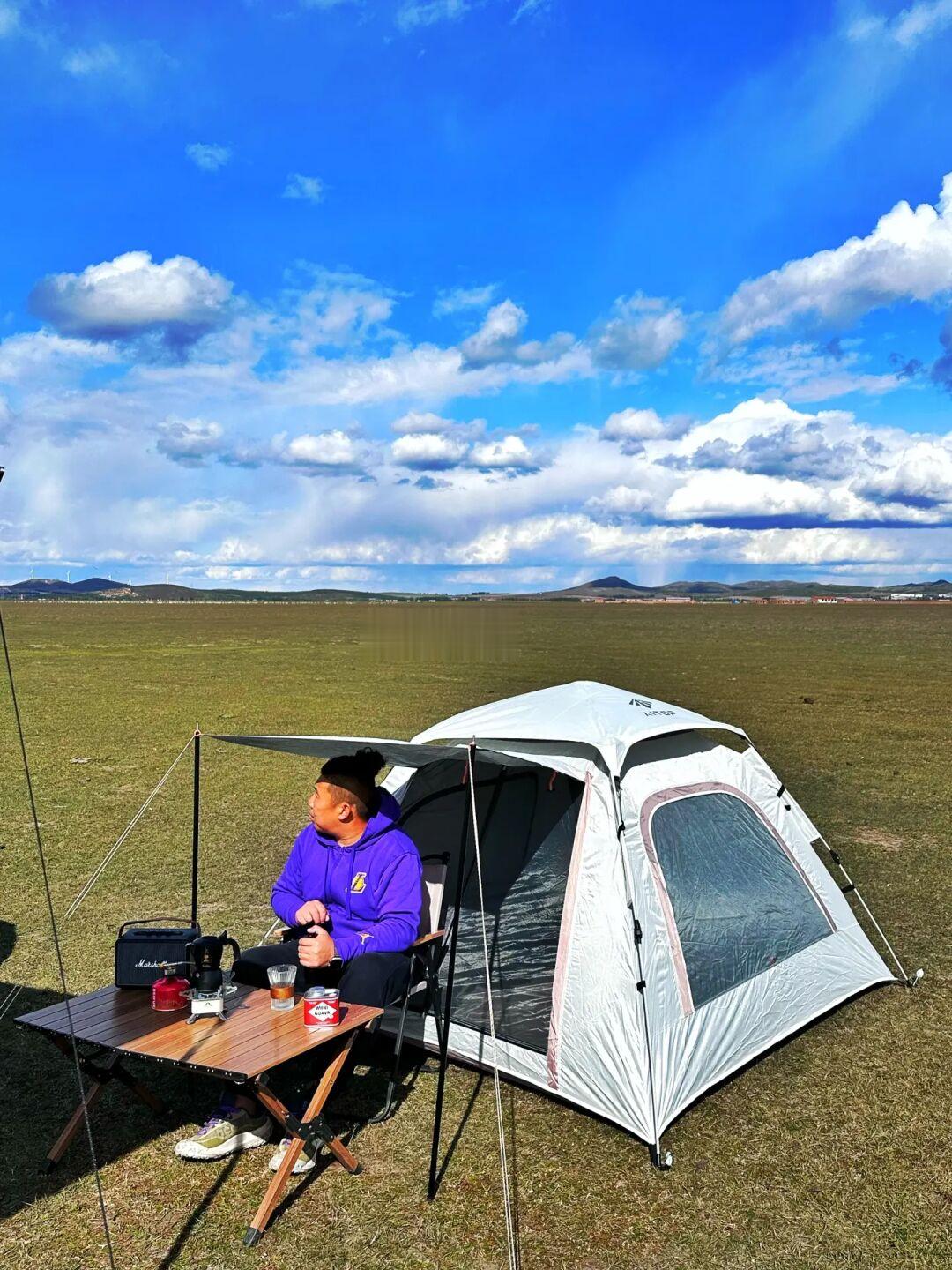 选对好的帐逢,在露营中可以省去许多麻烦。首先,它要安全、轻盈、好搭建。其次,它的空间、舒适度、防御性能等都是需要考虑的。这次出门,我们带的是牧。 自动速开帐篷它采用了一体式全自动杆设计,所以整体很轻盈,搬起来不重,一拉一抖轻松就能打开。我和媳妇只需打好地钉,帐篷就搭建好了。帐篷是独立顶批涂银防晒,拿掉后是透明观景大天窗,再加上天幕客厅+落地大窗门,孩子们躺着就能感受窗外的自然,高密网纱窗能防蚊虫打扰,秋日露营必不可少。