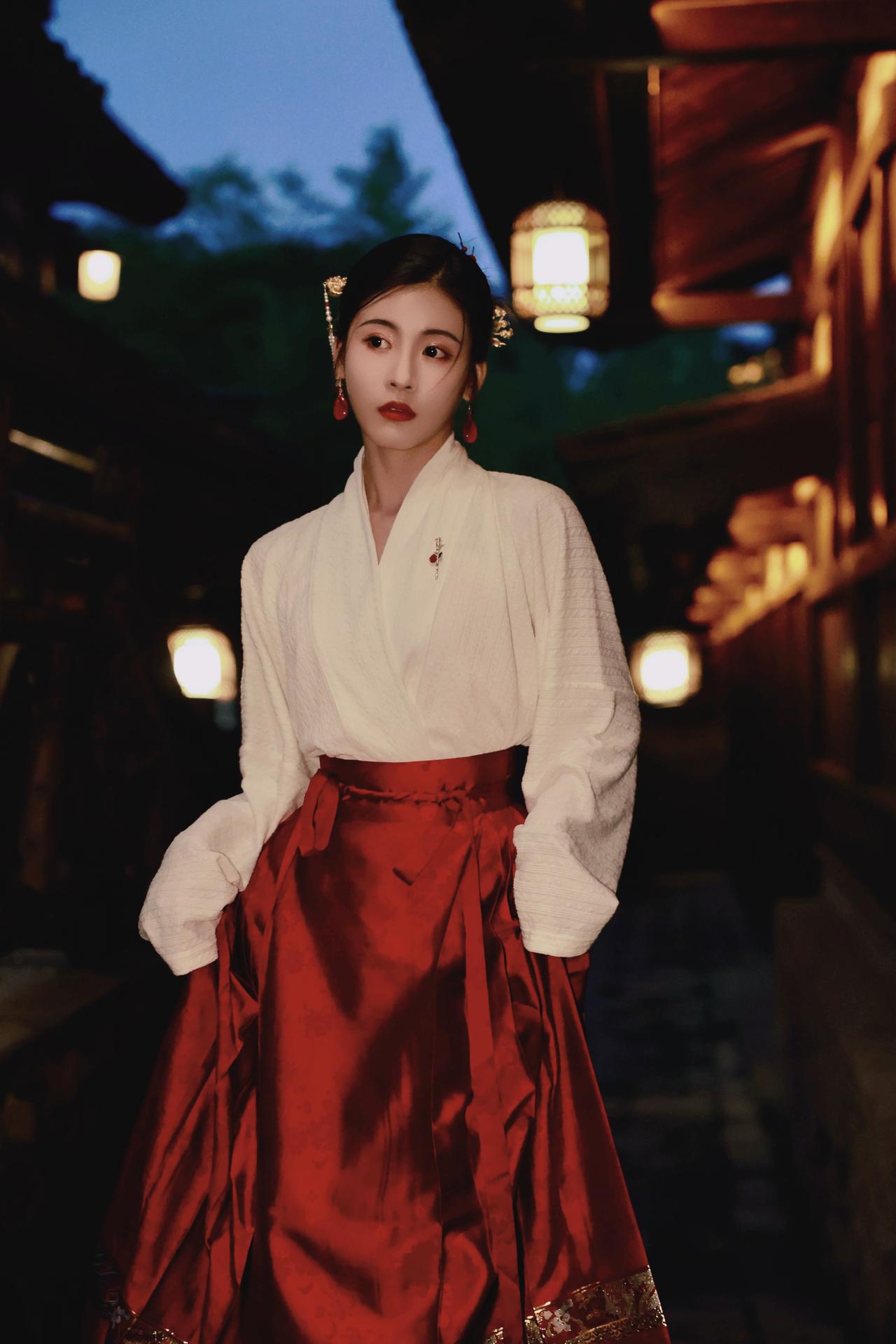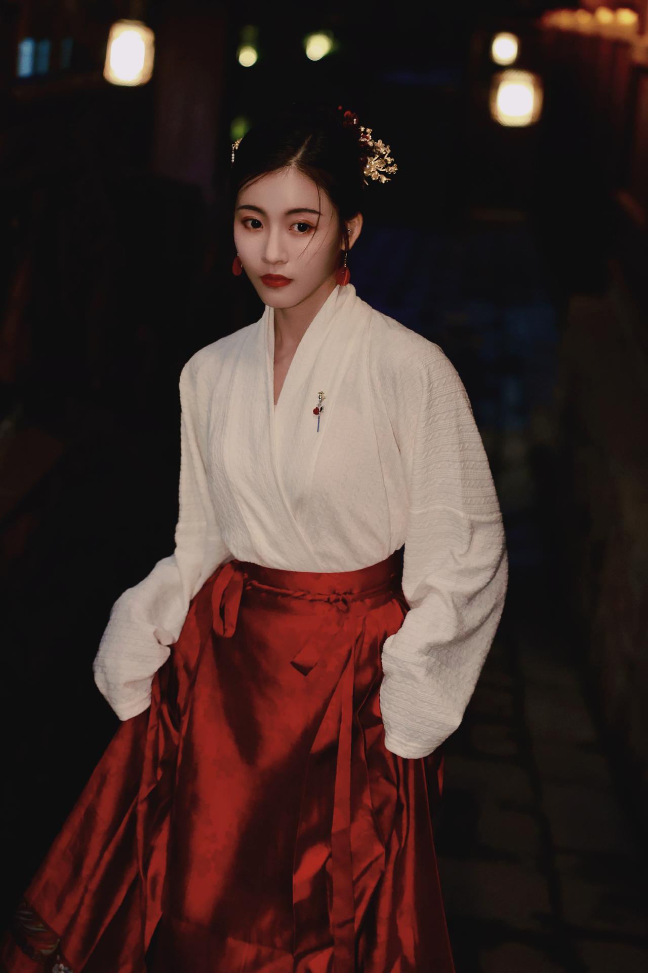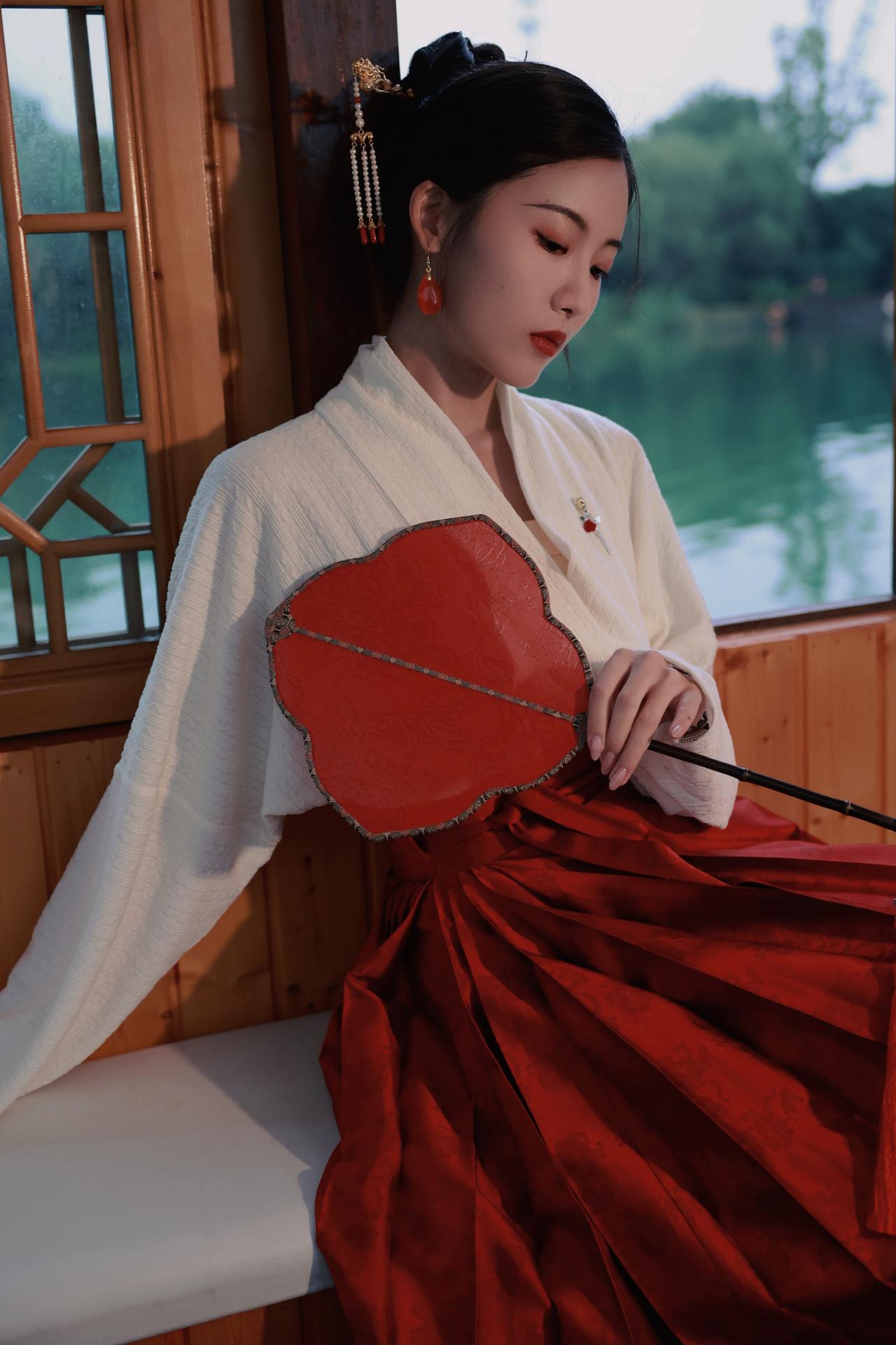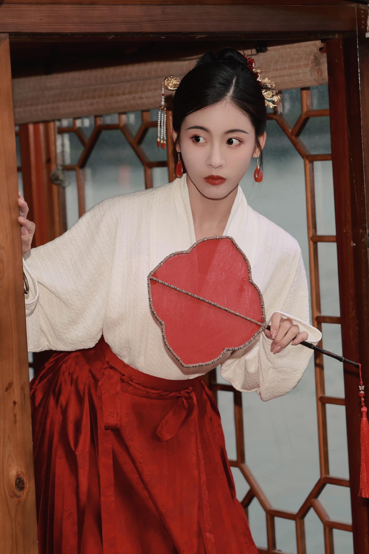 孙芮针织飞机袖搭配凤凰繁花马面裙造型写真,红白色彩交织,优雅且艳丽迷人。#妙笔生