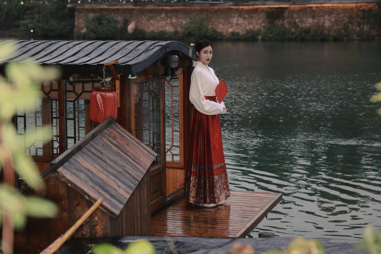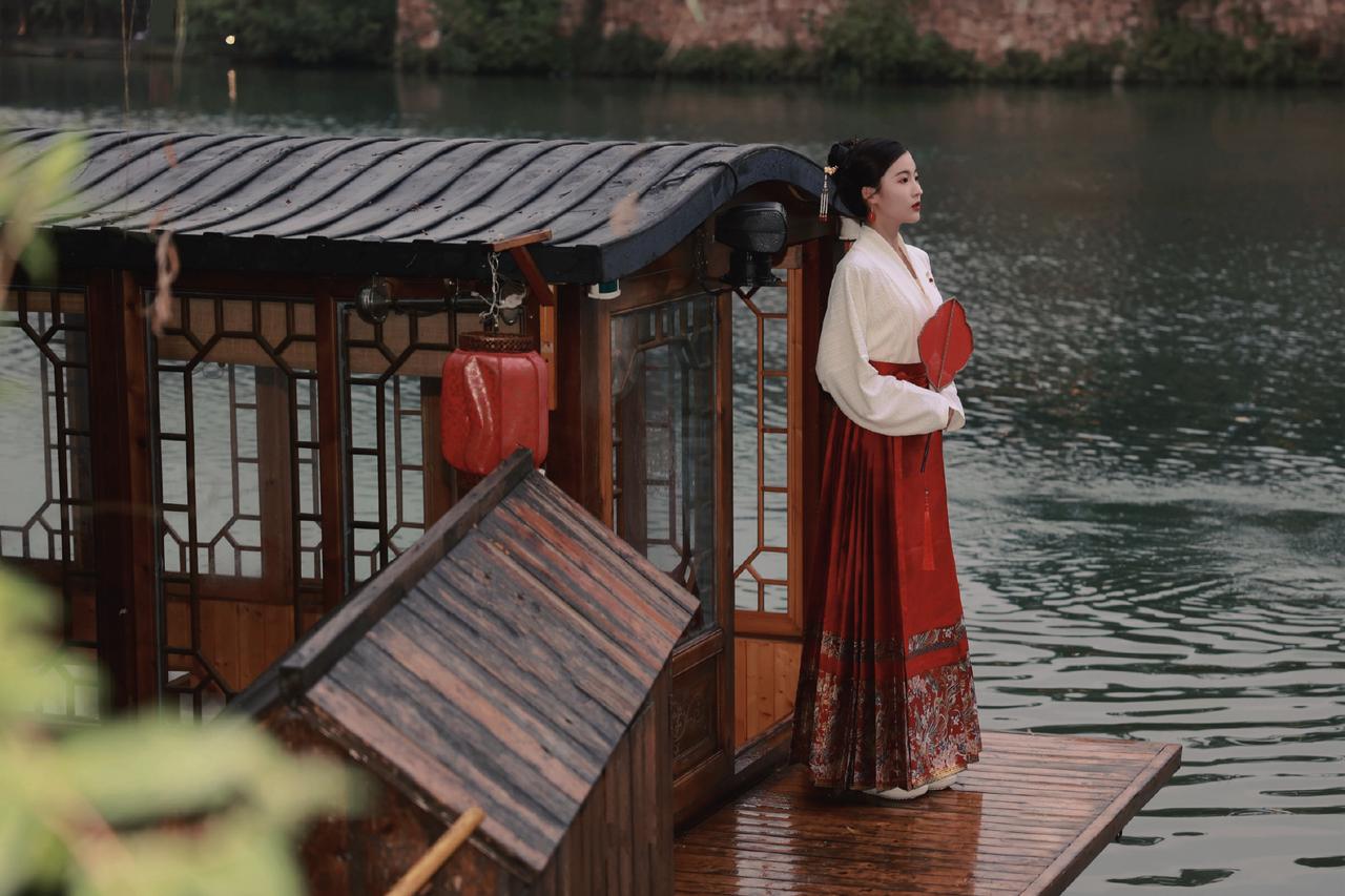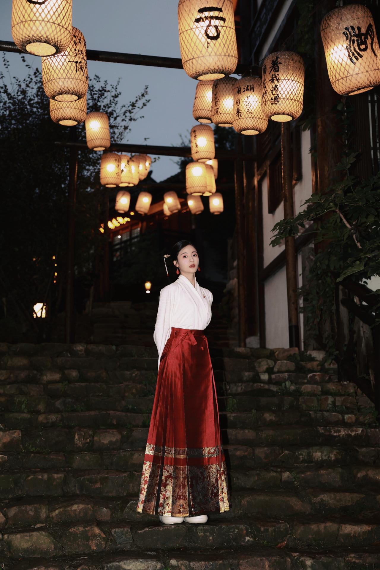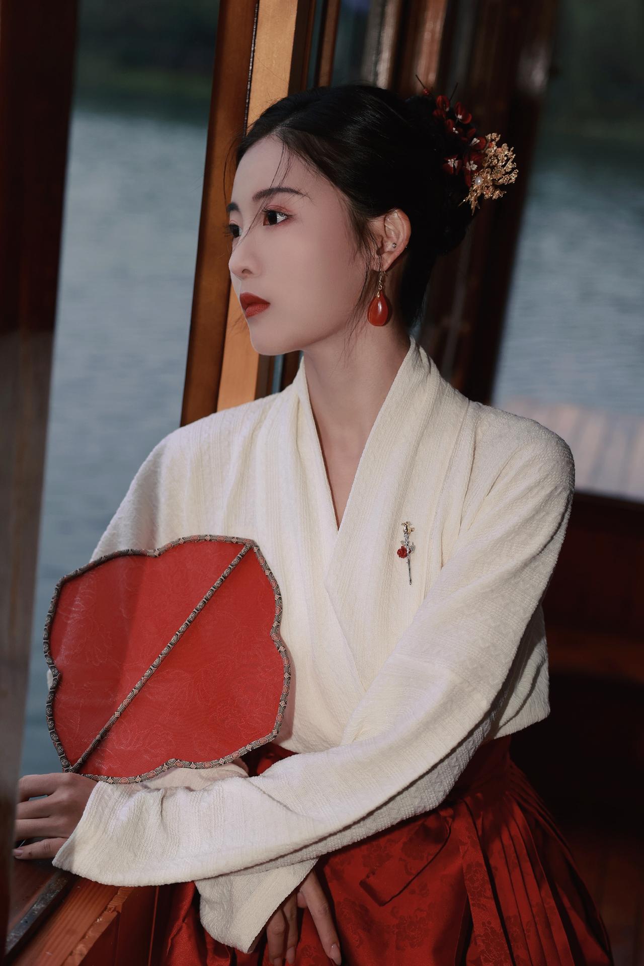 孙芮针织飞机袖搭配凤凰繁花马面裙造型写真,红白色彩交织,优雅且艳丽迷人。#妙笔生