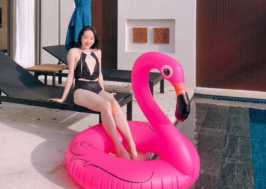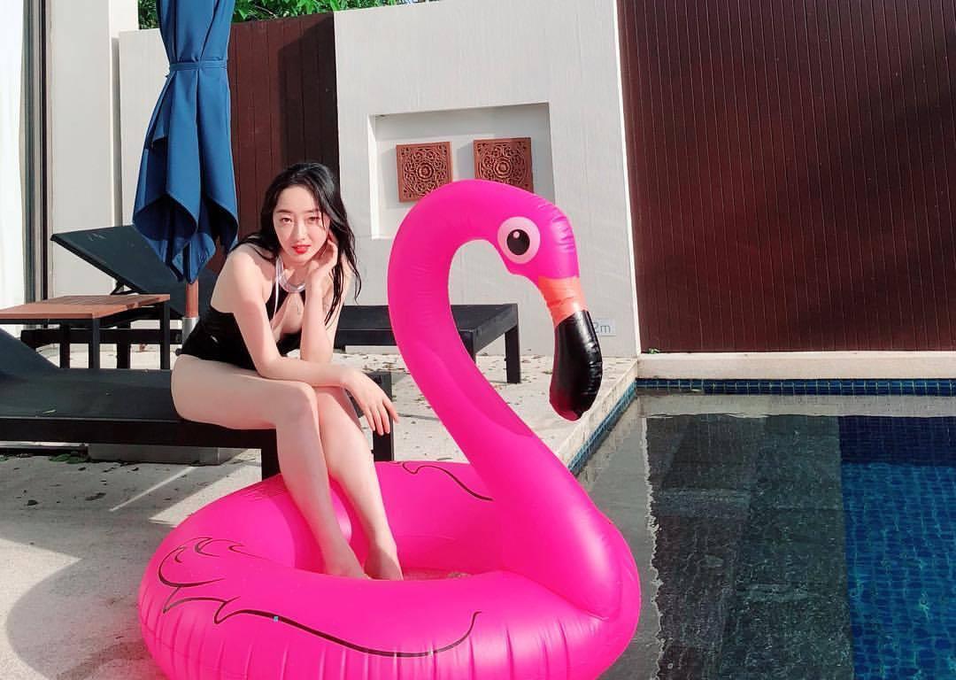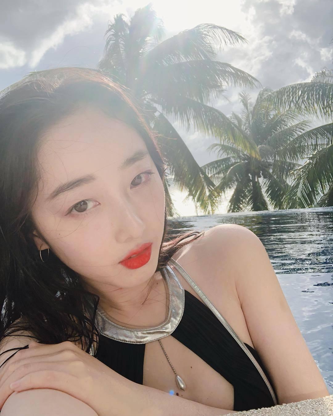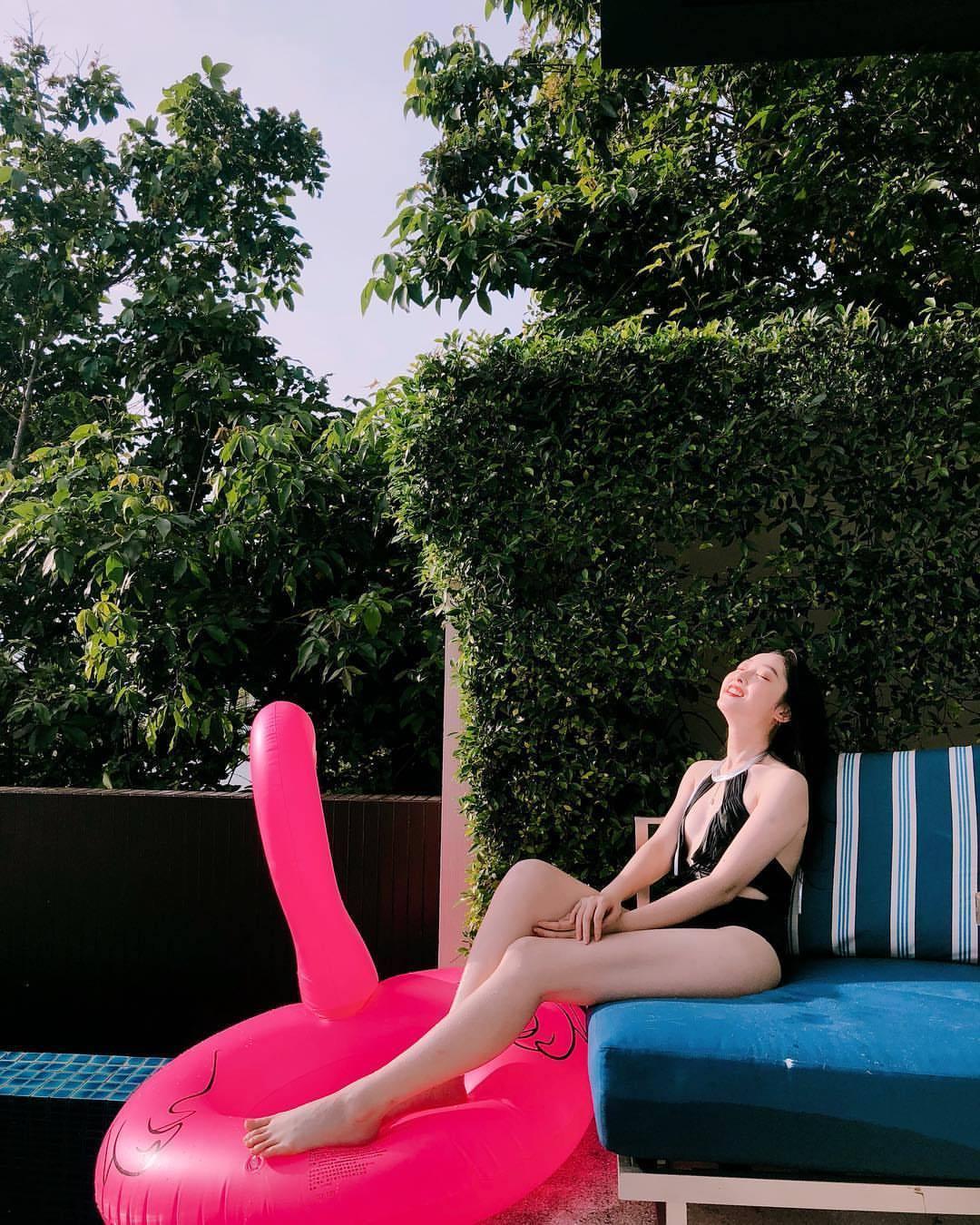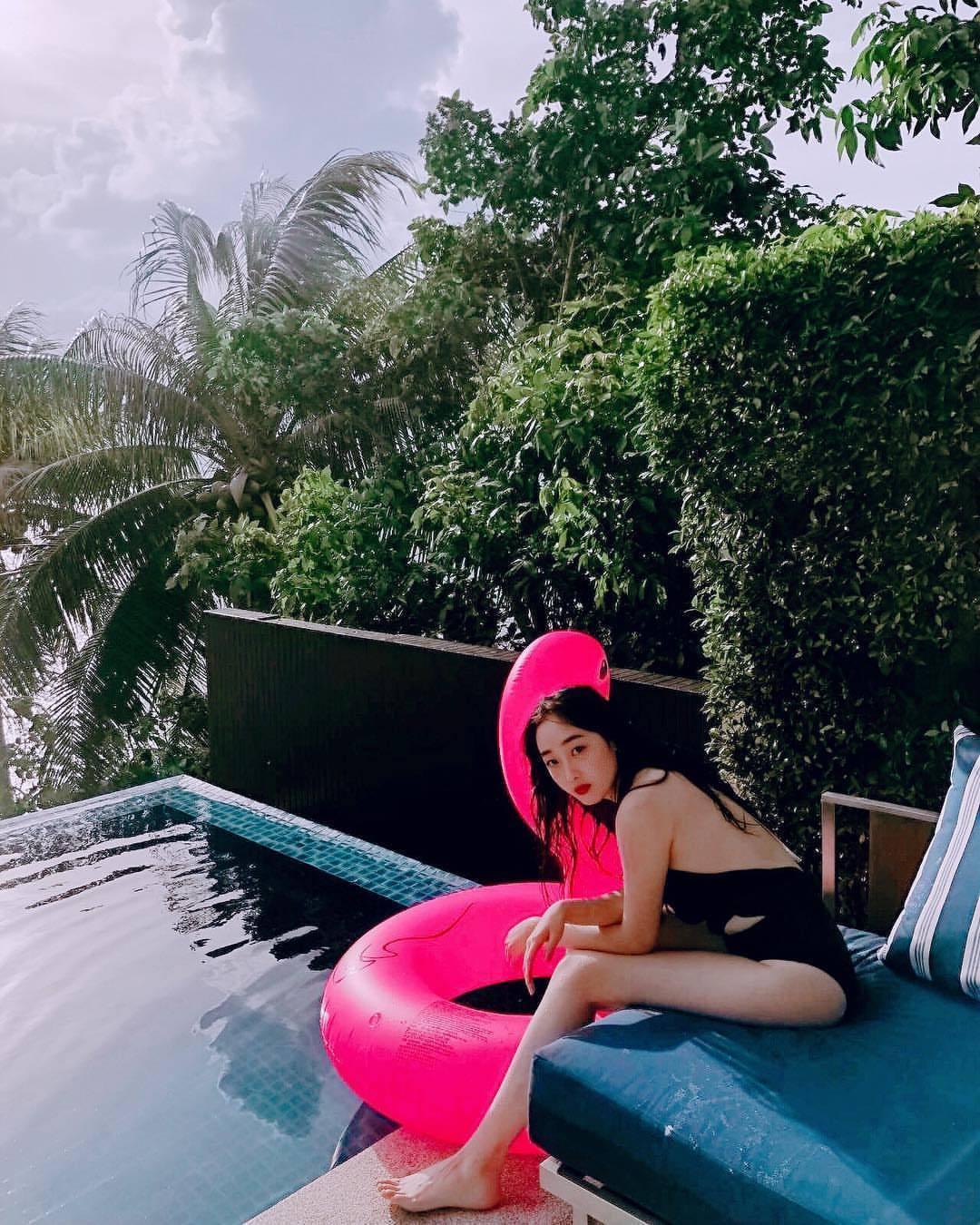 蒋梦婕泳池泳装戏水照:一身黑色泳衣,大秀美腿好身材,夏日氛围气息满满。#妙笔生花